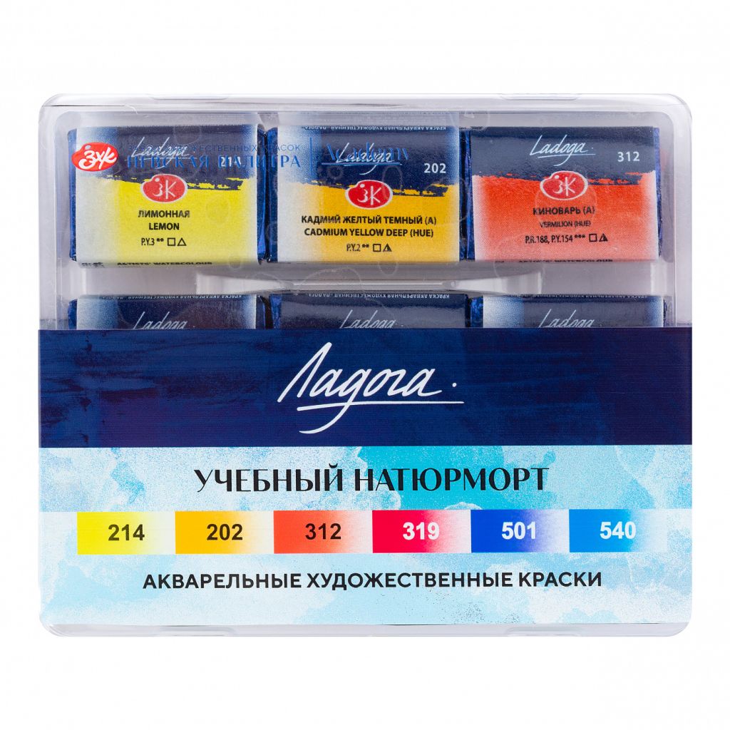Художественные акварельные краски «Ладога» разработаны для решения творческих задач учащихся профессиональных образовательных учреждений. Рекомендованы для создания этюдов, эскизов, учебных и дипломных работ. Применяя в ежедневной работе акварель «Ладога» будущие мастера живописи изучат основные изобразительные приемы и техники, цветоведение и цветовые гармонии. Тонкодисперсные акварельные краски «Ладога» выпускаются с применением современных синтетических пигментов и традиционного связующего - натурального гуммиарабика, признанного лучшей растительной смолой для приготовления художественных красок. Краски «Ладога» обладают яркими насыщенными цветами. Компактный набор из 6 цветов представлен в пластиковом коррексе.