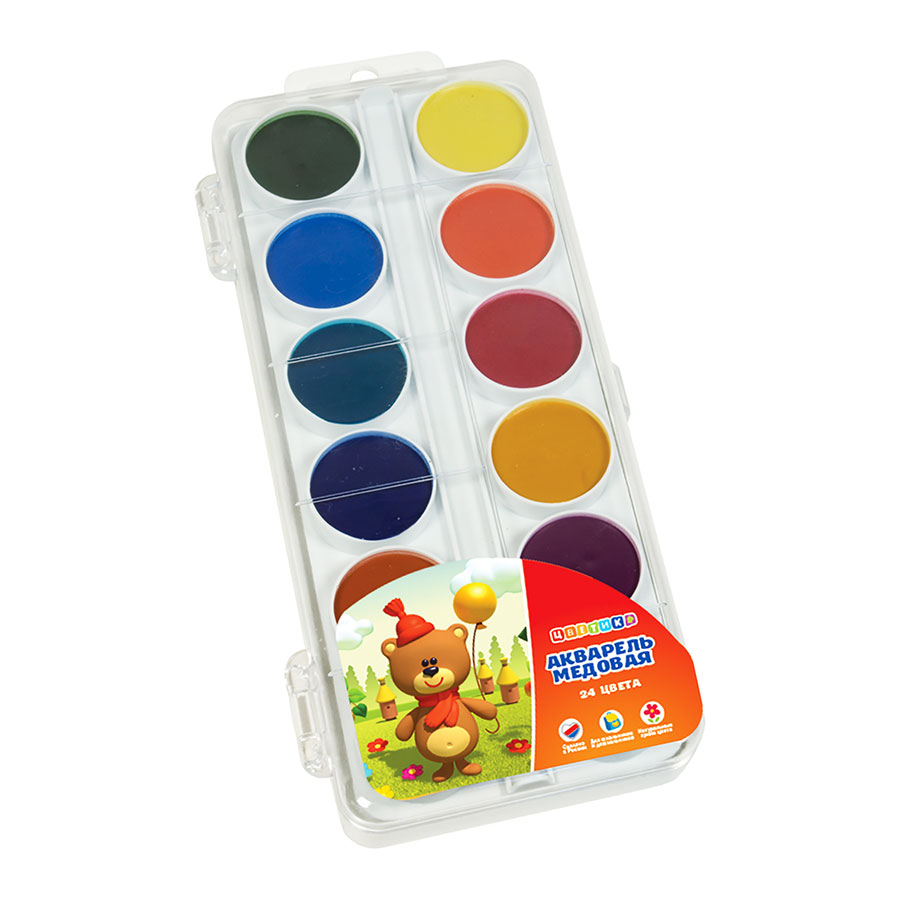 О серии: изготавливается из тщательно подобранных материалов с добавлением медосодержащих компонентов. Серия товаров «Цветик» разработана специально для детского творчества и декоративно-оформительских работ. Краски соответствуют европейским нормам безопасности. Выпускаются в наборах с разным количеством цветов. Производство: производится заводом художественных красок Невская палитра, расположенным в городе Санкт-Петербурге. Завод уже более 80 лет выпускает продукцию для профессиональных художников и любителей творчества. Характеристики: обладают хорошей кроющей способностью. При высыхании образуют матово-бархатистую поверхность. Размываются водой Применение: для детского творчества и оформительских работ.
