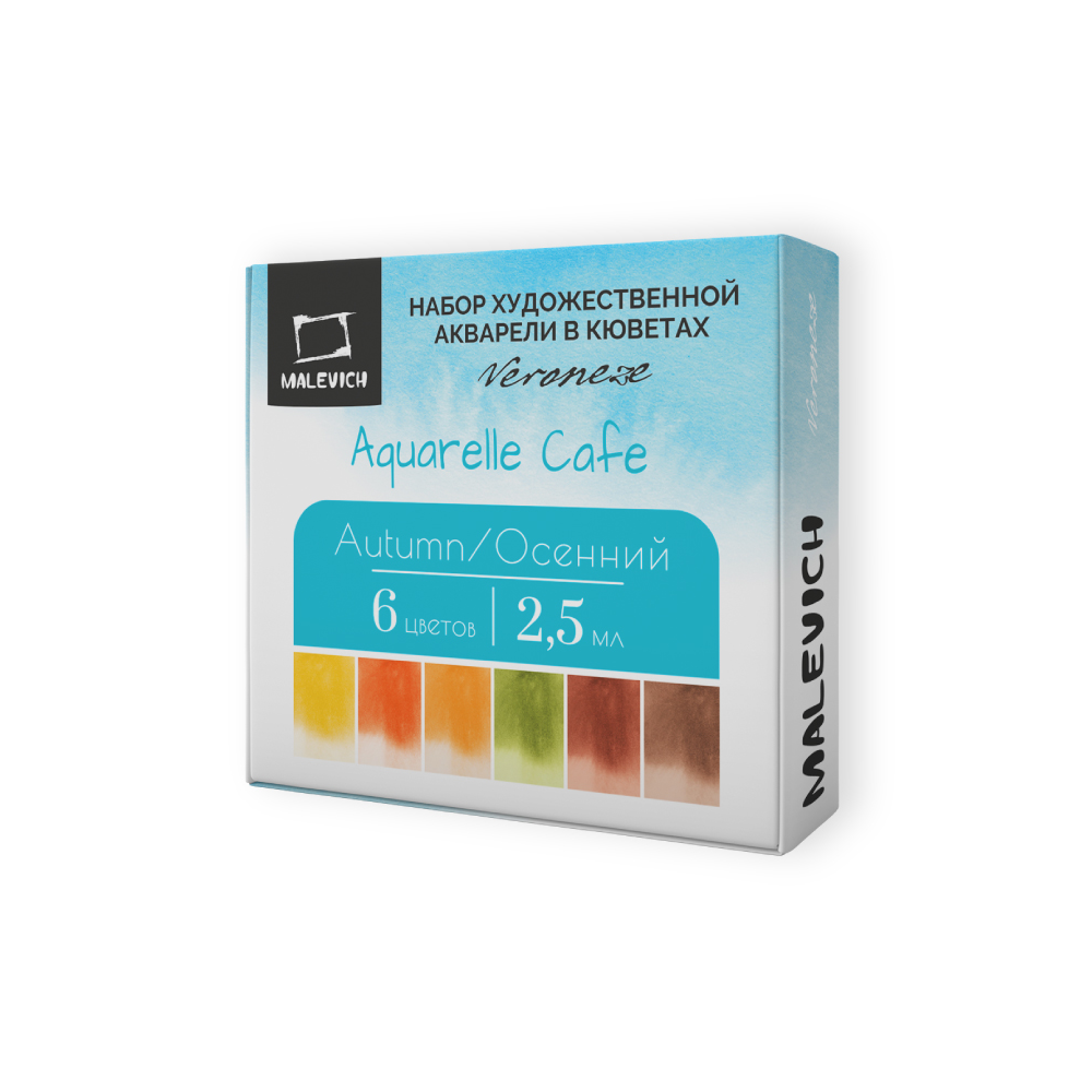 Серия акварели «Малевичъ» Veroneze из 25 цветов создана совместно с российскими художницами из творческого онлайн журнала. Она содержит базовые цвета, а дополнительные оттенки подобраны таким образом, чтобы исключить некрасивые тусклые и глухие смеси. Все краски яркие, прозрачные и полупрозрачные, легко набираются, прекрасно смешиваются и дают ровные заливки. Есть и пара гранулирующих цветов, которые помогут создать волшебные фактуры и эффекты. Акварель создана без использования соединений кадмия и животных компонентов. В наборе 6 цветов.
