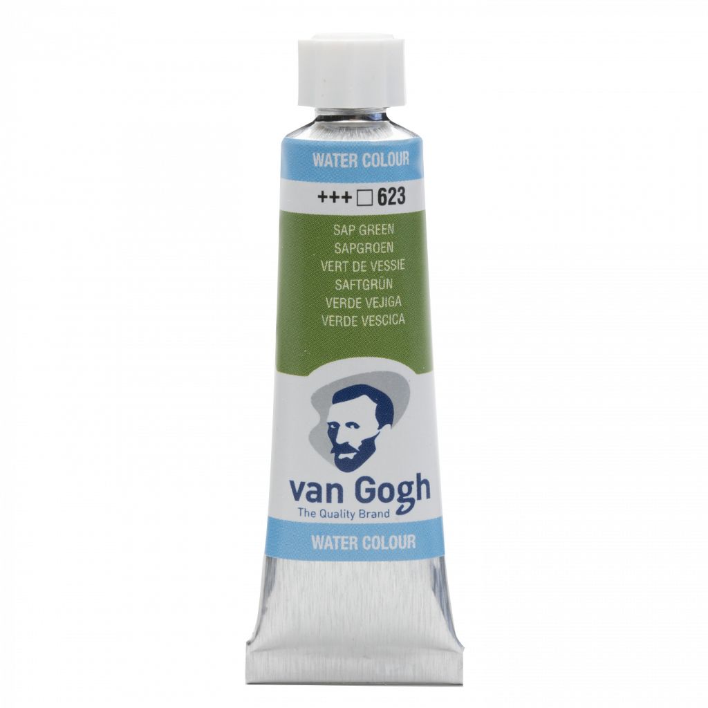Акварель Talens "Van Gogh" – прекрасный выбор, как для профессиональных художников, так и для любителей. В состав краски входят пигменты высокой степени очистки и чистый гуммиарабик. Акварель Talens "Van Gogh" — это прозрачная краска с насыщенными и яркими цветами. Легко наносится на поверхность. Все цвета смешиваются между собой, образуя новые оттенки. Краска, даже сильно разведенная водой, обладает высокой светостойкостью. Палитра акварели Talens "Van Gogh" пополнилась 32 новыми цветами (ищите цвета с пометкой NEW), среди новинок представлены: интерферентные цвета, цвета с металлическим эффектом, цвета с эффектом грануляции, а так же новые оттенки с различными характеристиками укрывистости. Полная палитра насчитывает 72 цвета. Краски выпускаются поштучно в тубах по 10 мл. и кюветах по 1.3 миллилитра. *Обратите внимание, что интерферентные цвета, цвета с металлическим эффектом, переливающиеся и цвета хамелеоны предназначены для использования на черной акварельной бумаге, так они наилучшим образом проявляют свои свойства. Выкраски таких цветов на фото также выполнены на бумаге черного цвета. Акварель Talens "Van Gogh" производится в городе Апелдорн голландской компанией «ROYAL TALENS». Основал её Мартин Таленс (Marten Talens) в 1899 году. Титул «Royal» (Ройал, королевский) компания получила в 1949 году от королевской четы за высокое качество продукции и следование традициям. «ROYAL TALENS» производит все виды художественных красок и является одним из ведущих производителей в своей отрасли.