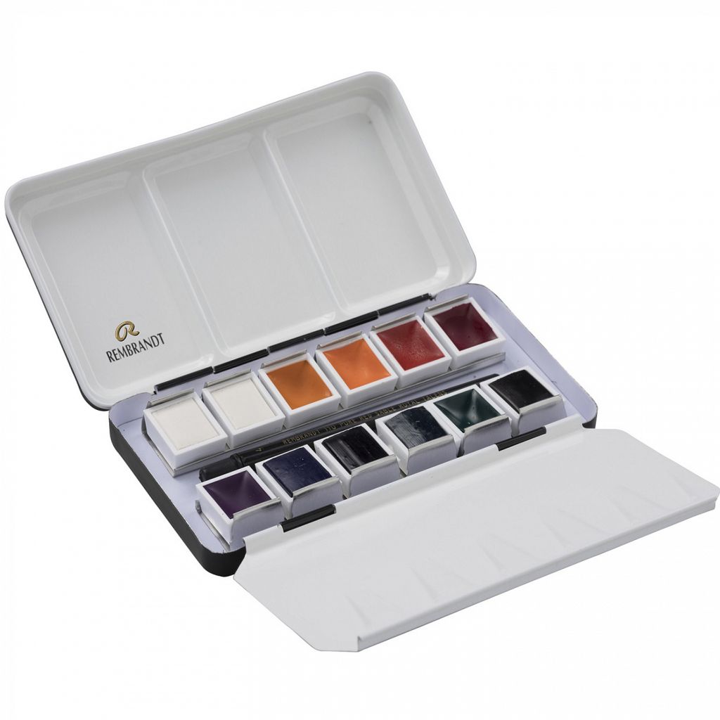 О серии: акварель Rembrandt представлена обновлённой широкой палитрой из 120 цветов, которые выпускаются в мягком виде в тубах, в полутвердом виде в кюветах. Краски предлагаются поштучно и в наборах различной комплектации. О наборе: набор из двух матовых белил с десятью чистыми цветами. Прозрачные цвета в смеси с белым получаются более укрывистыми и бархатисто-матовыми. Комплектация набора: 12 цветов — №106, 106, 248, 297, 364, 368, 583, 585, 593, 675, 681, 715, сборная кисть серии 110 №4 (круглая из соболя), металлический пенал с палитрой. ? Характеристика: акварель Rembrandt – уникальная по своим свойствам профессиональная краска. В ней совмещены лучшие традиции прошлого и современные технологии. Эти краски изготавливаются из качественных пигментов сверхтонкого помола и чистого гуммиарабика. Благодаря мелкому помолу пигмента краска обладает высокой степенью светостойкости, прозрачности и при этом обеспечивает отличную цветопередачу. Она хорошо ложится на поверхность, позволяя художнику контролировать расход краски на бумаге с любой сложной фактурой. Производство: акварельные краски Rembrandt производится в городе Апелдорн голландской компанией ROYAL TALENS. Основал её Мартин Таленс (Marten Talens) в 1899 году. Титул «Royal» (Ройал, королевский) компания получила в 1949 году от королевской четы за высокое качество продукции и следование традициям. ROYAL TALENS производит все виды художественных красок и является одним из ведущих производителей в своей отрасли.