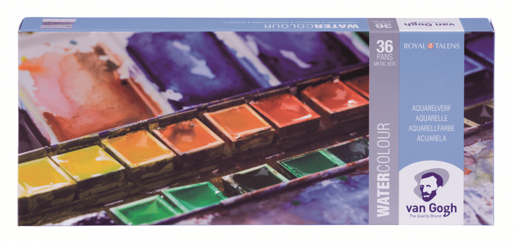 О серии: акварель Van Gogh представлена палитрой из 40 различных цветов. Все цвета выпускаются поштучно в тубах по 10 миллилитров и кюветах по 2,5 миллилитра. Также представлен широкий выбор наборов, которые удобно брать с собой. Комплектация набора: в данный набор входит 36 кюветы акварели Van Gogh и круглая кисть №6 с синтетическим ворсом. Набор упакован в металлический пенал, крышку которого можно использовать в качестве палитры для смешивания цветов. Цвета в наборе отмечены на фото с цветовой гаммой акварели VAn Gogh Характеристика: в состав краски входят пигменты высокой степени очистки и чистый гуммиарабик. Акварель Van Gogh – это прозрачная краска с насыщенными и яркими цветами. Легко наносится на поверхность. Все цвета смешиваются между собой, образуя новые оттенки. Краска, даже сильно разведенная водой, обладает высокой светостойкостью. Уровень Study. Производство: акварельные краски Van Gogh производится в городе Апелдорн голландской компанией ROYAL TALENS. Основал её Мартин Таленс (Marten Talens) в 1899 году. Титул «Royal» (Ройал, королевский) компания получила в 1949 году от королевской четы за высокое качество продукции и следование традициям. ROYAL TALENS производит все виды художественных красок и является одним из ведущих производителей в своей отрасли.