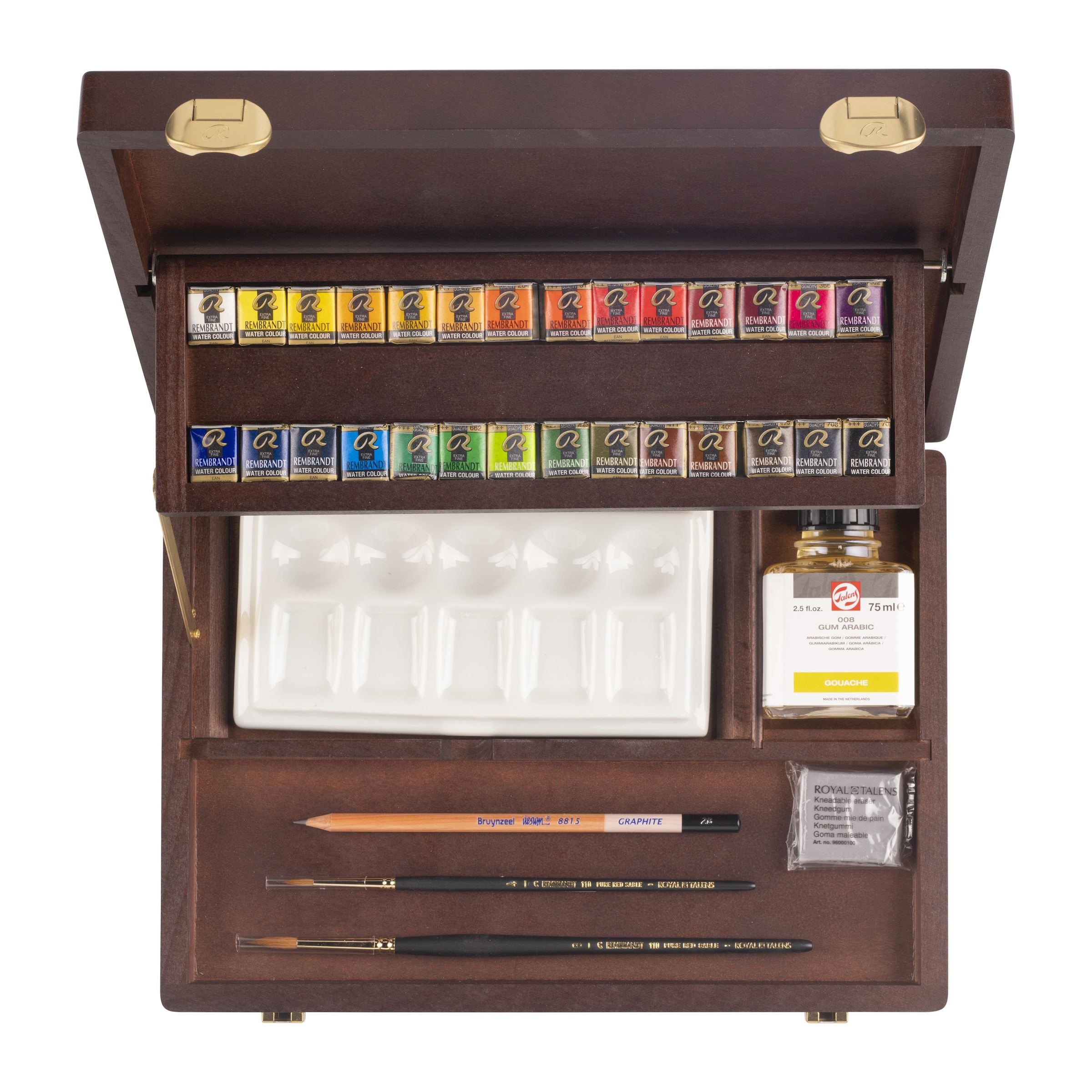 Акварель Rembrandt изготавливается исключительно из натуральных пигментов с примесью чистого гуммиарабика, благодаря чему акварель остается светостойкой даже при сильном разбавлении водой, а картины не выцветают в течение десятков лет. Акварельная краска Rembrandt не расплывается по бумаге и быстро сохнет - картина сохраняет четкость и безупречный переход от полупрозрачных оттенков к насыщенным. Профессиональные краски Rembrandt от голландского бренда Royal Talens - настоящая гарантия качества. Акварель обладает высокой концентрацией пигмента, благодаря чему обеспечивается особая яркость цветов и крайне экономичное расходование. В состав большинства акварельных красок Royal Talens входит всего один уникальный пигмент, а значит можно смешивать несколько цветов и получать безупречно чистые оттенки, обладающие высочайшей прозрачностью. Так же в набор входят кисть и палитра. Такой набор отлично подойдет как профессионалу, так и начинающему художнику.