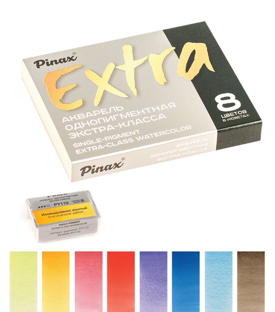 Профессиональная акварель Pinax EXTRA характеризуется применением лучших пигментов и натурального высококачественного гуммиарабика. Высокая степень перетира на краскотерках с керамическими валами, а также максимальная концентрация пигмента позволяют получать цвета с непревзойденной прозрачностью, чистотой и насыщенностью цвета. Краски прекрасно смешиваются и идеально подходят для всех акварельных техник. Только цвета, сделанные на основе пигментов с максимальной светостойкостью, могут войти в серию EXTRA. В этой линейке акварельных красок Pinax намерено решили отказаться от маркетинговых названий цветов, использовав взамен имя пигмента, сосредоточив фокус на том что действительно важно. Это нашло продолжение в дизайне этикетки – цветовой индекс пигмента расположен по центру этикетки. Для достижения максимальной прозрачности и чистоты цвета при производстве акварели серии Pinax EXTRA значимы следующие факторы: краски перетираются на краскотерках с керамическими валами, чтобы добиться абсолютной чистоты цвета и оптимальной дисперсии пигментов; в отличие от металлических валов, используемых при производстве красок большинством производителей, керамические валы не дают металлического загрязнения краски и практически не нагреваются при трении, что позволяет получать при заводском производстве краску лабораторного уровня качества; акварель производится в России на новейшем оборудовании, используя современные методы производства; в производстве применяются только чистейшие пигменты высшего качества от лучших мировых производителей со всего мира; контроль качества сырья и на каждом этапе производства