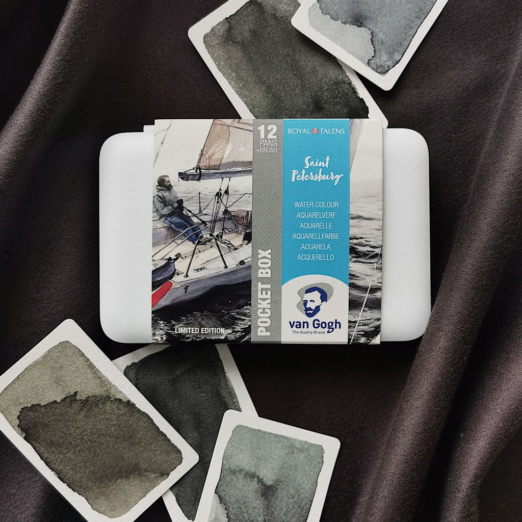 Да, теперь он существует! Перед вами набор акварели Van Gogh "Цвета Санкт-Петербурга". Тот самый, который мы придумали 1 апреля :) Мы прониклись вашим вниманием, тысячами репостов и комментариев и.... создали этот лимитированный набор специально для вас! Напоминаем, что приобрести такой набор можно только в России и только в Красном Карандаше. Мы тщательно подбирали подходящие оттенки и смешивали между собой всю палитру, перепробовав бесконечное количество комбинаций. Набор получился совершенно уникальным и в то же время универсальным. Мы продумали всё до мелочей и даже названия цветов у этого набора особенные: 291 - Побелочный (PW6/PBr7) 840 - Корюшковый (PW15/PW6/PBk11) 234 - Достоевский желтый (PY42) 238 - Достоевский бледно-желтый (PY154/PR101) 735 - Поребриковый (PBk11) 339 - Парадный кирпичный (PR101) 661 - Эрмитажный бирюзовый (PB15/PB29) 715 - Непонятный серый (PBk6/PV19) 416 - Осенний грязный (PBk7/PR101) 533 - Финский лазурно-серый (PB15/PBk6) 708 - Небесный серый (PBk6/PV19) 748 - Нормальный болотный (PBk11/PG7/PBr7) Глубокие благородные цвета при смешивании рождают самые необычные фактуры и смелые сочетания — потрескавшаяся стена, ледяная вода, искрящийся снег, мокрый асфальт или блестящая чешуя. Всё это в сочетании с компактной упаковкой, крышкой-палитрой и складной кистью делают его идеальным компаньоном для путешествий, пленэров и легких городских зарисовок. Надеемся, что вы получите огромное удовольствие от этого долгожданного набора и творческого процесса — наслаждайтесь :)