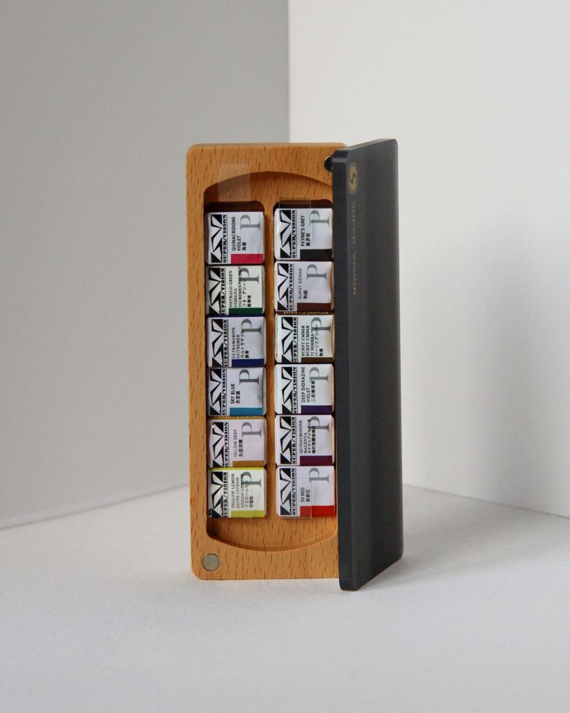 Этот набор профессиональной акварели Super Vision создан совместно Китайской Академией Изящных Искусств. Внутри набора 12 цветов профессиональной, прозрачной и светостойкой акварели в кюветах в классической цветовой палитре. Богатый опыт Академии Искусств позволил создать практичную подборку оттенков, способных передать любой сюжет и удовлетворить любые потребности художников со всего мира. В отличие от плотной китайской акварели, эта линейка очень прозрачна, благодаря чему идеально подходит для техники лессировки. Акварель произведена из высококачественных пигментов и связующего, обладает хорошей адгезией, проникая прямо в текстуру бумаги. Все цвета отлично смешиваются между собой, позволяя создавать новые оттенки. Набор поставляется в стильном деревянном кейсе с матовой крышкой на магнитах. В наборе 12 цветов профессиональной акварели Super Vision, выкраску цветов в наборе вы можете увидеть в дополнительных фото.