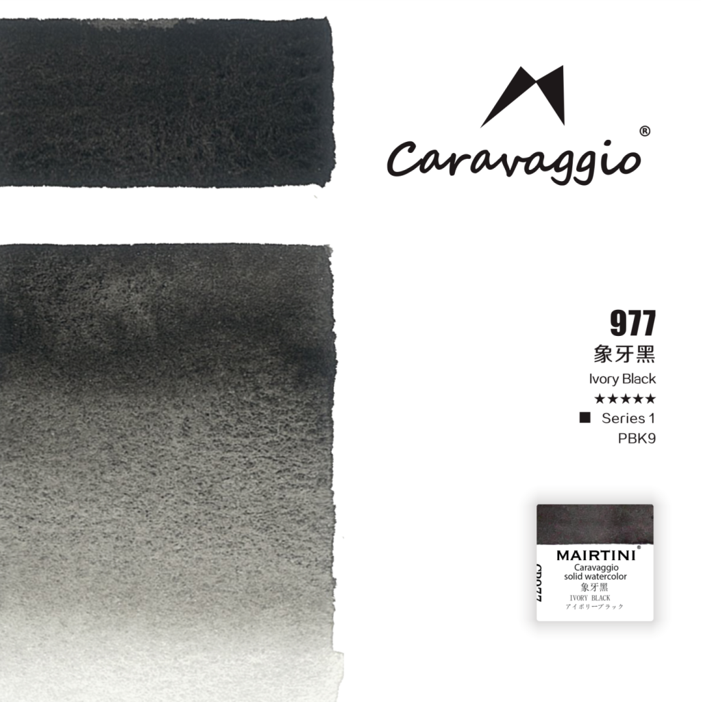 Mairtini Caravaggio — флагманская линейка акварельных красок бренда. Пигменты для этой акварели изготавливаются в Японии. Краски проходят 4–5 циклов розлива и естественной сушки, что делает их максимально насыщенными пигментов и концентрированными. Палитра включает 48 оттенков. Большая часть цветов выполнена на основе одного пигмента, что обеспечивает чистоту и глубину тона. Краски обладают высокой светостойкостью и не содержат наполнителей, благодаря чему работы сохраняют яркость и насыщенность в течение долгого времени. Caravaggio — профессиональная акварель высочайшего уровня, подходящая для сложных техник и многослойной живописи. Представлена в формате полукювет, премиальных наборов в деревянном ящике, а также гармонично подобранных наборов, из 6 кювет в деревянной упаковке с магнитом.