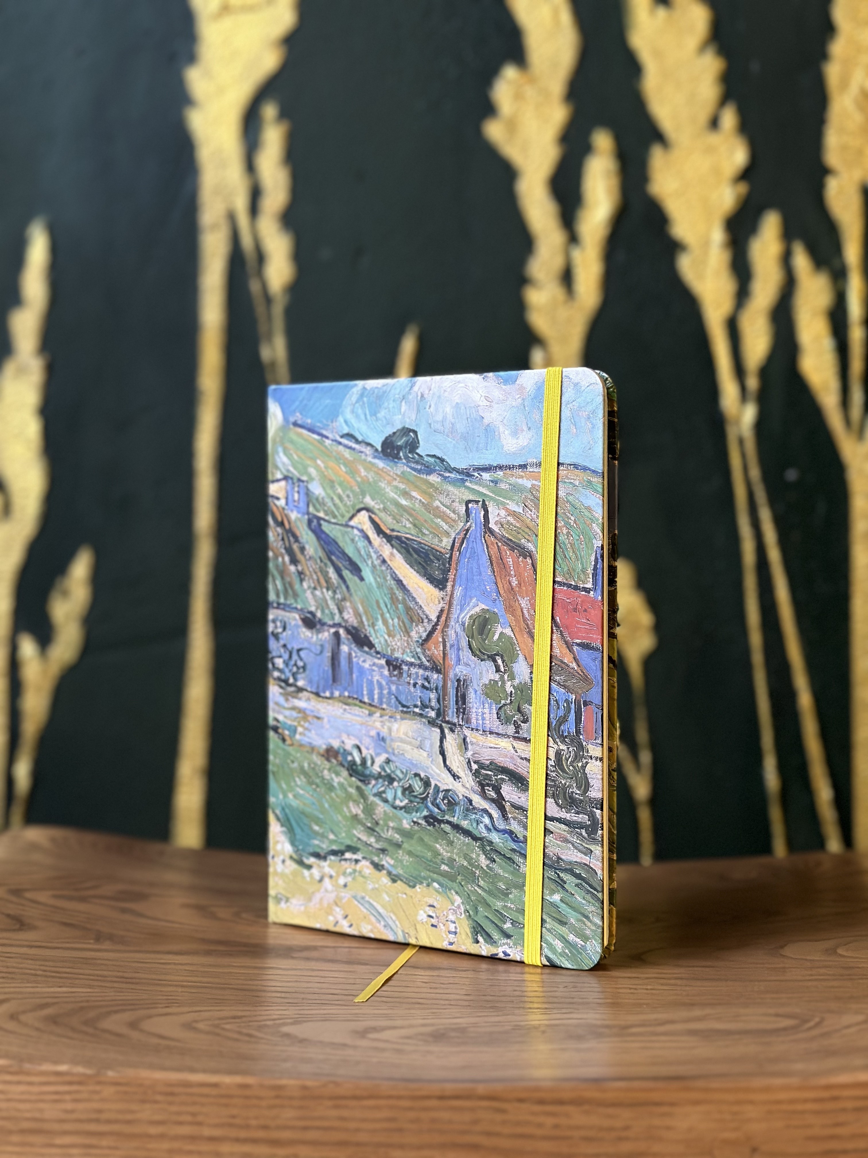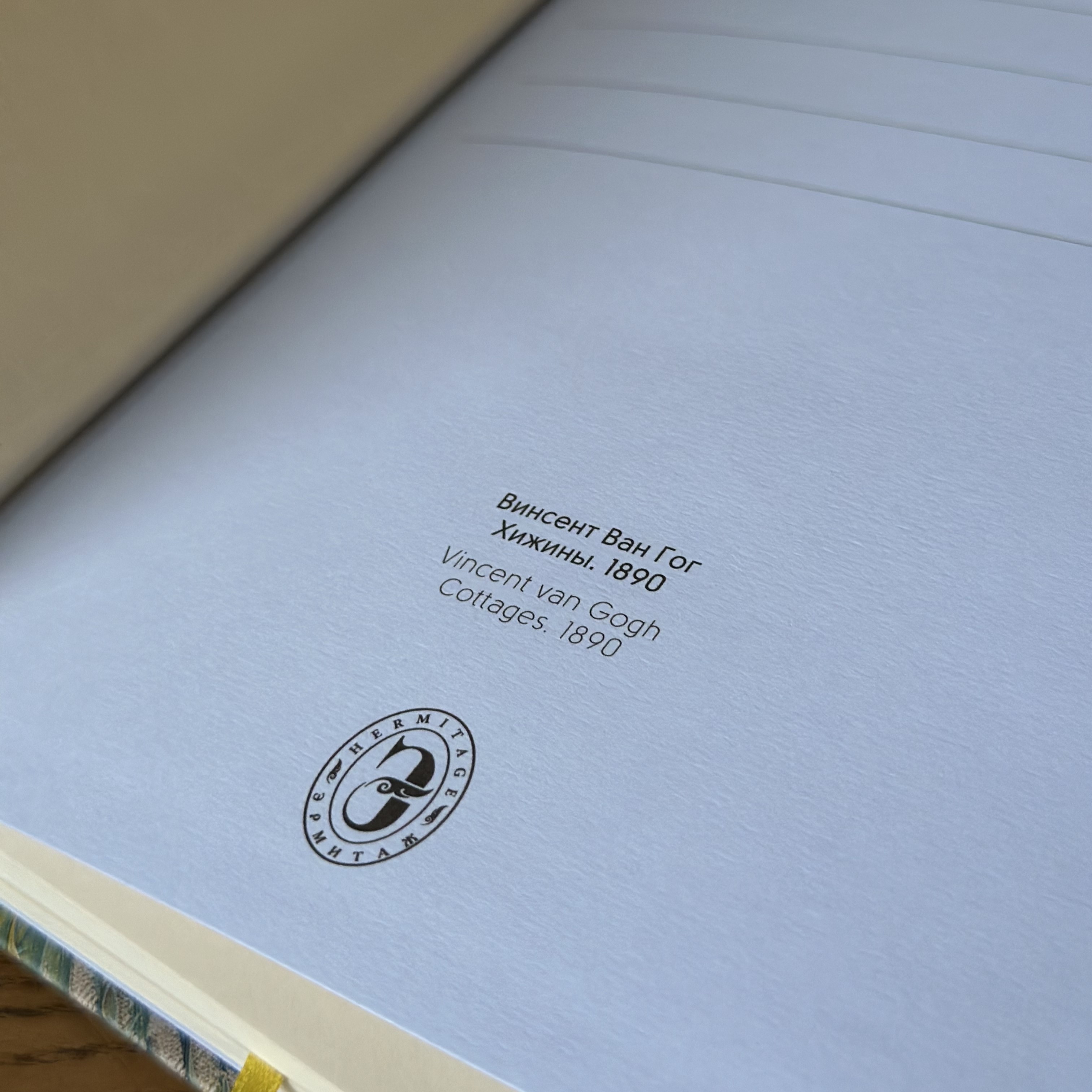 Блокнот из коллекции, посвящённой наследию Винсента Ван Гога. Практичный твёрдый переплёт из прессованного картона и резинка-фиксатор позволяют не беспокоиться о сохранности заметок. Обложка блокнота украшена фрагментом работы Ван Гога «Хижины» из собрания Эрмитажа.