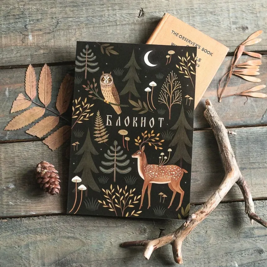 Блокнот с иллюстрацией Александры Дворниковой формата А5 содержит 42 листа нелинованной бумаги плотностью 120 гр/м2, отлично подойдёт как для записей и заметок, так и для лёгких зарисовок любыми сухими графическими материалами. Обложка выполнена из плотного картона с глянцевой ламинацией. Иллюстрации Александры, вдохновлённые бесконечной любовью к природе, красотой леса и знакомыми с детства сказками, нашли своё новое гармоничное воплощение в повседневных аксессуарах PlantMyBones.