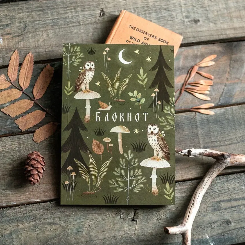 Блокнот с иллюстрацией Александры Дворниковой формата А5 содержит 42 листа нелинованной бумаги плотностью 120 гр/м2, отлично подойдёт как для записей и заметок, так и для лёгких зарисовок любыми сухими графическими материалами. Обложка выполнена из плотного картона с глянцевой ламинацией. Иллюстрации Александры, вдохновлённые бесконечной любовью к природе, красотой леса и знакомыми с детства сказками, нашли своё новое гармоничное воплощение в повседневных аксессуарах PlantMyBones.