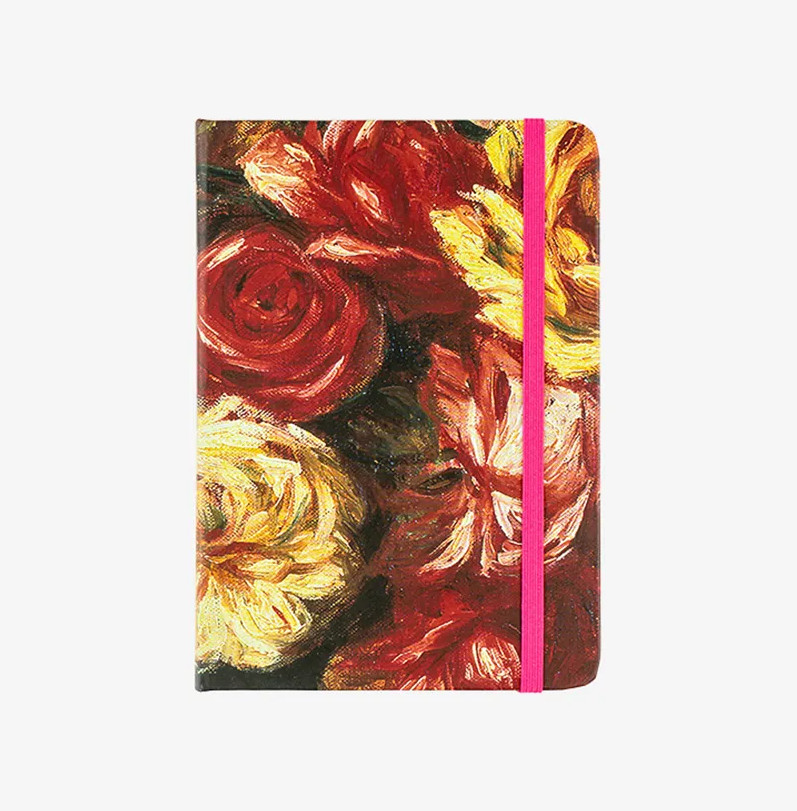 Блокнот из коллекции, посвящённой наследию Огюста Ренуара. Практичный твёрдый переплёт из прессованного картона и резинка-фиксатор позволяют не беспокоиться о сохранности заметок. Обложка блокнота украшена фрагментом работы Ренуара из собрания Эрмитажа.