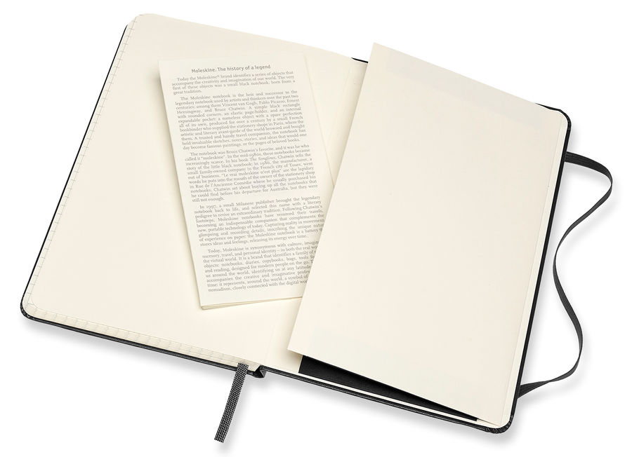 Достаточно маленькая, чтобы поместиться в любую сумку, достаточно большая, чтобы вместить великие идеи. Новая записная книжка Classic среднего размера от Moleskine имеет закругленные углы для защиты от повреждений в дороге и эластичную застежку для сохранности записанных вашей рукой мыслей и творческих идей. Подходящая по цвету лента-закладка помогает не забыть о ваших проектах, а в расширяемый внутренний кармашек удобно складывать разные заметки, сделанные в течение дня. Под оригинальной надписью «In case of loss» на переднем форзаце можно указать свое имя, контактные данные и уведомление о вознаграждении на случай, если вы где-то потеряете свои важные заметки. Этот блокнот среднего размера предлагается в классическом черном, алом и сапфировом синем цвете с нелинованной бумагой либо страницами в линию, точку или клетку. Он создан стать вашим компаньоном, куда бы вы ни направлялись, и готов сохранить вдохновенные идеи, где бы они вас ни посетили.