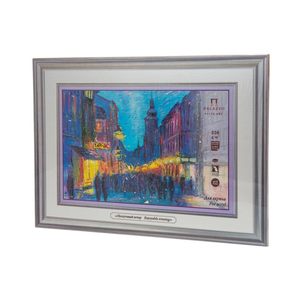 Характеристика: для изготовления картона «Нескучный вечер» использована специальная белая бумага с тиснением "лён" повышенной плотности – 330 г/кв.м. Бумага хорошо удерживает на себе краски на акриловой основе. Применение: подходит для выполнения работ акриловыми красками. Производство: производится российской компанией «Лилия Холдинг», основанной в 2000 году. Компания является официальным партнером Санкт-Петербургской бумажной фабрики – филиала государственного унитарного предприятия «Гознак». При производстве бумаги специалисты компании используют современные технологии, что позволяет изготавливать бумагу высшего сорта. За время существования компания стала одним из крупнейших производителей бумаги в России.