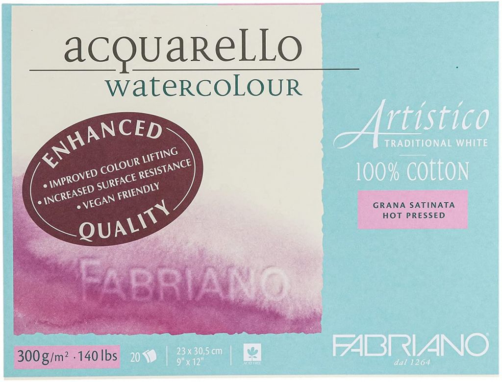 Бумага для акварели «Artistico» изготавливается из 100% хлопка. При производстве не используются кислоты и химические отбеливатели, что гарантирует сохранность бумаги с течением времени. Благодаря своей структуре бумага хорошо впитывает влагу. Она подойдёт не только для акварели, но и для гуаши, темперы и графических материалов (уголь, сепия и др.). Бумага «Artistico» удовлетворит требования художников любой квалификации. По краю листа нанесены водяные знаки «FABRIANO+ARTISTICO». Технические характеристики: Вид бумаги: Для акварели Форма выпуска: Альбом склейка Размер: 23*30.5 см Плотность бумаги: 300 гр/кв.м Количество листов: 20 Фактура бумаги: Сатин (мелкое зерно) Состав бумаги: 100% хлопок Бумага для акварели «Artistico» («Артистико») изготавливается под итальянским брендом «FABRIANO» («Фабриано»). Бренд получил название в честь маленького города в Италии, в котором расположилось производство. Бумага «FABRIANO» была известна уже со времен эпохи Возрождения, на ней творили такие художники как Микеланджело, Гойя и Рафаэль. Сегодня в Италии 5 заводов, которые выпускают продукцию, относящуюся к этому бренду. За время работы они стали известны на весь мир как производители, которые изготавливают качественную и высокотехнологичную бумагу.