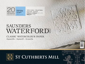 Бумага для акварели Saunders Waterford («Сандерс Ватерфорд») изготавливается на мануфактуре «St Cuthberts Mill» («Ст Кутберц Милл»), которая была основана около 1700 года на юго-западе Англии в графстве Сомерсет (Somerset) близ города Гластонбери (Glastonbury). Производство началось с маленьких партий бумаги для художников на мельнице крепости. С тех пор технологии были дополнены с учетом требования художников многих поколений. Но для мануфактуры «St Cuthberts Mill» по прежнему главное это качество продукции, которое достигается мастерством сотрудников, чистотой местных рек и лугов. Бумага для акварели Saunders Waterford – производится на традиционной цилиндрической машине, которая делает бумагу максимально похожей на бумагу ручного литья. Для изготовления используется только 100% хлопок без добавления кислот и без оптических добавок для предания блеска. Бумага имеет архивное качество и обладает средним уровнем жесткости (Ph 7-9). Устойчива к исправлениям . Бумага сохраняется в течении сотен лет не изменяя своего цвета. Saunders Waterford подходит для работы со следующими материалами: акварель, гаушь, чернила, пастель и другие сухие графические материалы. Бумага для акварели Saunders Waterford выпускается в разных форматах и в двух цветах: белый и белоснежный. Размер: 41х31 см Зернистость: среднее зерно Цвет: белый Плотность: 300 гр/м.кв.