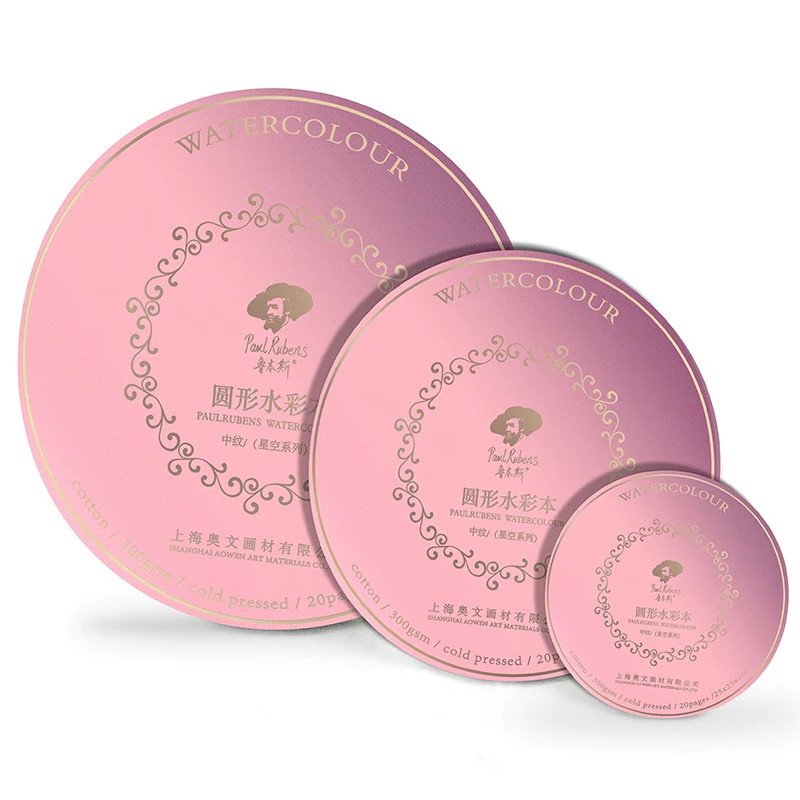 Компактный скетчбук для акварели круглой формы от бренда Paul Rubens содержит 20 листов акварельной бумаги плотностью 300 гр/м2. Бумага произведена с добавлением хлопка (50%) обладает среднезернистой фактурой и естественным белым цветом. Крепление на склейке и твердая подложка позволяют использовать скетчбук в качестве планшета и работать на весу. Серия представлена блокнотами разного формата с бумагой разной зернистости.