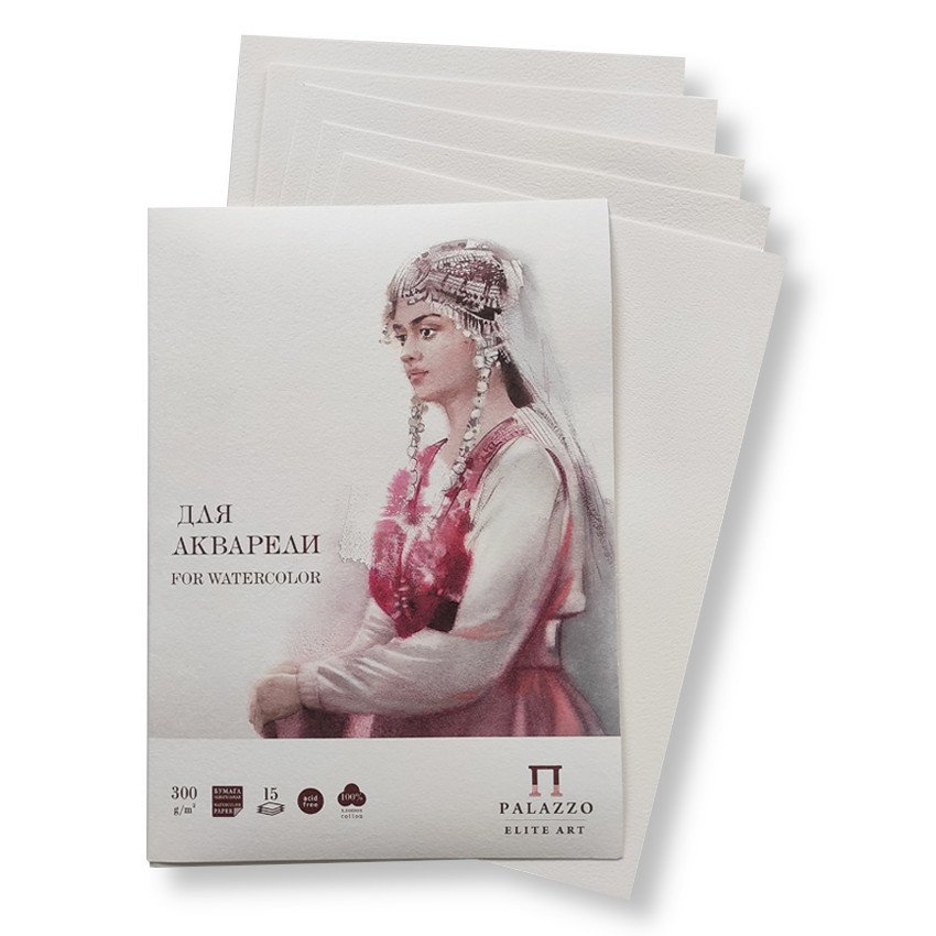 В папке 15 листов акварельной бумаги на 100% состоящей из хлопкового волокна и плотностью 300 г/м2. Хлопок в составе бумаги и её повышенная плотность придают ей ценные характеристики: долговечность, хорошее закрепление и впитывание краски, при высыхании бумага сохраняет свой вид и не коробится. Бархатистая фактура приятна тактильно и позволяет создавать красивые акварельные эффекты.