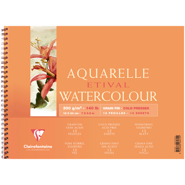 Бумага для акварели «Etival» («Этиваль») выпускается французской компанией «CLAIREFONTAINE» («Клэрфонтэн»). Компания прошла путь от маленького семейного производства до одного из крупнейших изготовителей бумажной продукции. Сегодня «CLAIREFONTAINE» выпускает более 150 видов бумаги, которая пользуется популярностью у студентов, дизайнеров и профессиональных художников. Бумага для акварели «Etival»изготавливается из 100% целлюлозы, но сохраняет такие же качества, как бумага из хлопка. Производится без добавления кислот. Поверхность бумаги хорошо взаимодействует с акварелью и гуашью, позволяя работать в различных техниках. Бумага для акварели «Etival» выпускается плотностью 200 и 300 г/кв.м. Предлагается с различной фактурой: среднее зерно (fin) и крупное зерно (torchon). Производится поштучно в листах и в альбомах различных форматов.
