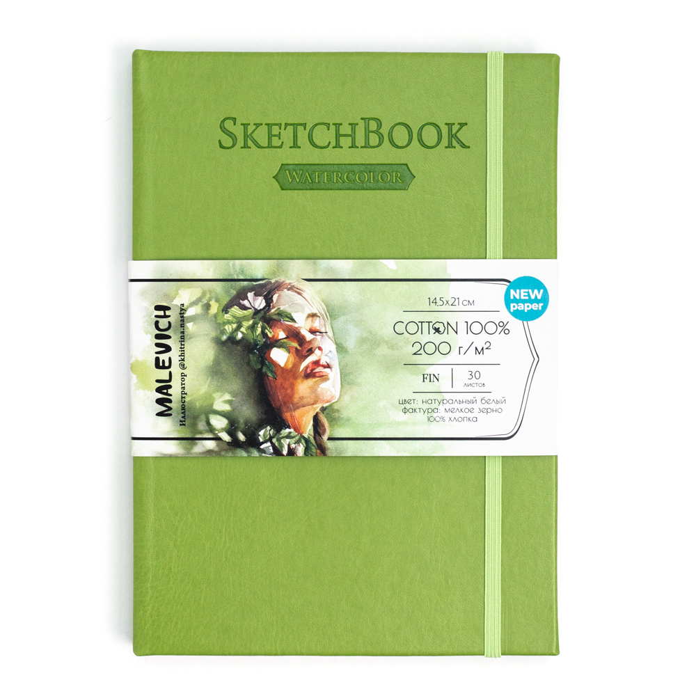 Компактные скетчбуки для акварели в книжном переплёте формата 14,5х21 см. Внутри скетчбука блок из 30 листов мелкозернистой бумаги выполненной из 100% хлопка без применения кислот и отбеливателей. Плотность бумаги 200 гр/м2 позволяет писать акварелью и другими красками на водной основе с использованием достаточно большого количества воды. Серия представлена скетчбуками в обложках разного цвета.