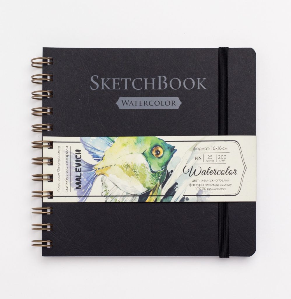 Внутренний блок - акварельная бумага с мелким зерном Fin плотностью 200 г/м, 100% целлюлоза. Бумага позволяет делать очень яркие работы, цвета отлично смешиваются и остаются сочными, не замыливаются и не жухнут. Бумага дополнительно отбелена, что также усиливает яркость красок. Благодаря специальной пропитке влага на поверхности высыхает медленно, что дает возможность заливке равномерно растечься, а также вовремя внести коррективы.