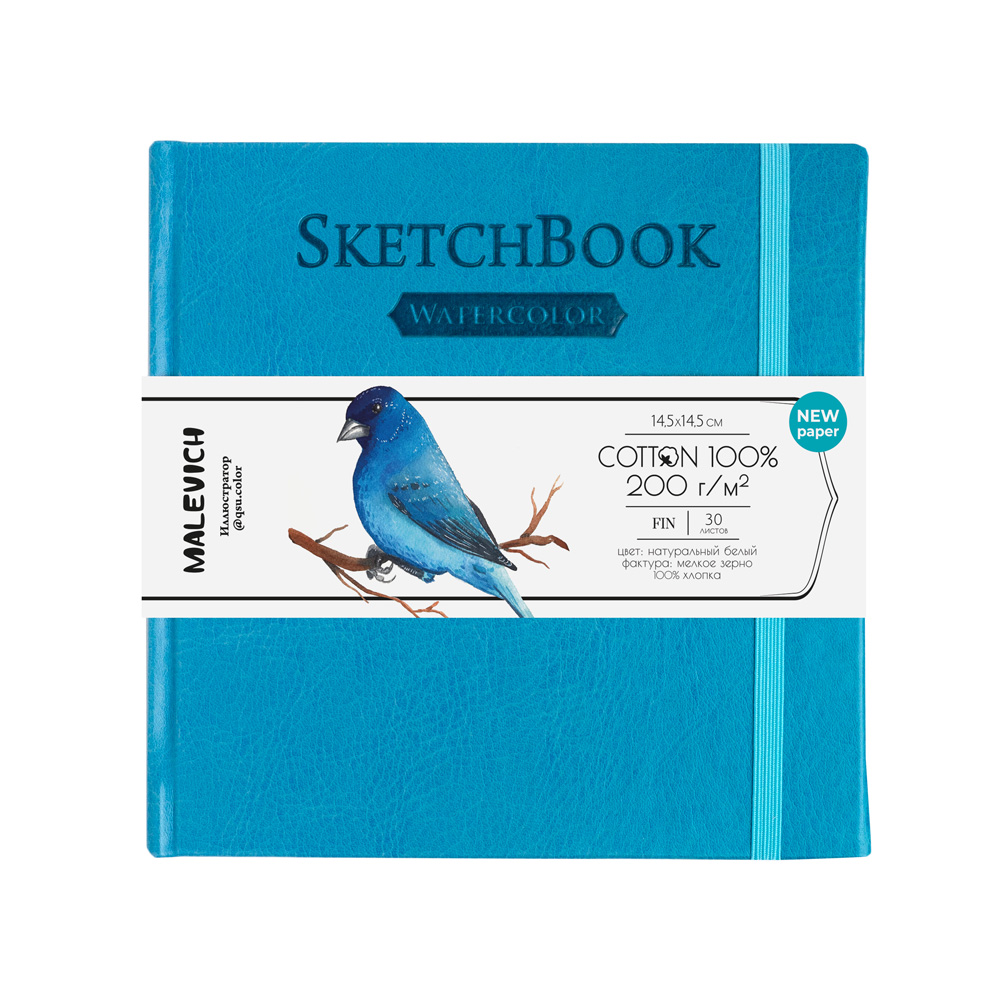 Компактные скетчбуки для акварели в книжном переплёте формата 14,5х14,5 см. Внутри скетчбука блок из 30 листов мелкозернистой бумаги выполненной из 100% хлопка без применения кислот и отбеливателей. Плотность бумаги 200 гр/м2 позволяет писать акварелью и другими красками на водной основе с использованием достаточно большого количества воды. Серия представлена скетчбуками в обложках разного цвета.