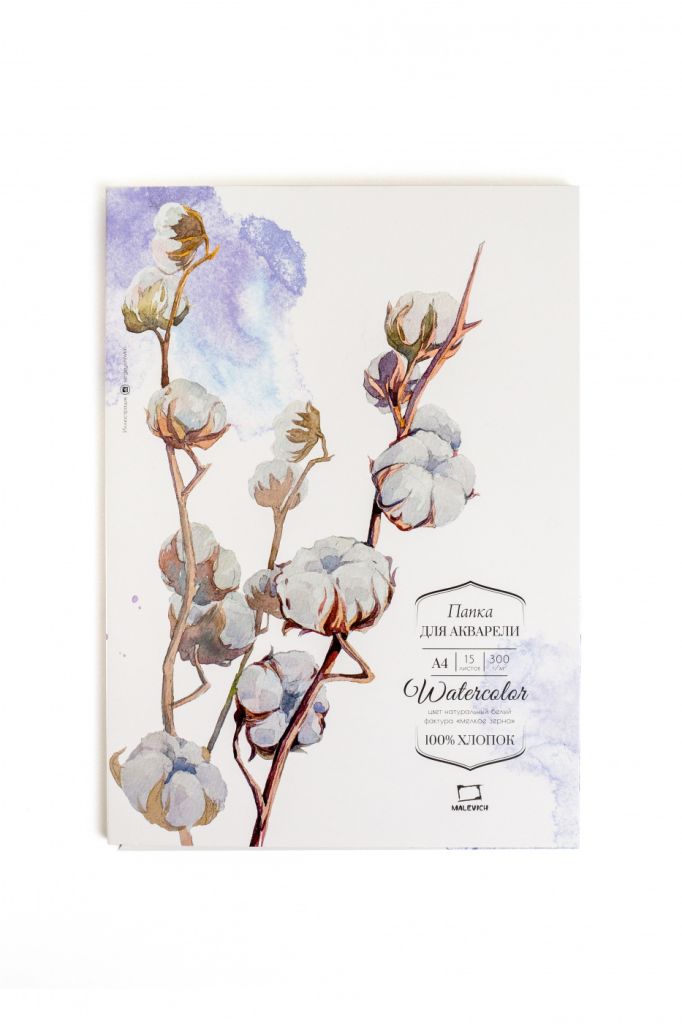 Папка для акварели от бренда «Малевичъ» содержит 15 листов высококачественной акварельной бумаги выполненной из 100% хлопка. Бумага обладает естественным белым цветом, мелкозернистой фактурой и плотностью 300 гр/м2. Такие качества делают бумагу идеальной для акварельной живописи в любых техниках. Бумага устойчива к исправлением и многократным смывкам, после высыхания не меняет форму и сохраняет ровную поверхность.