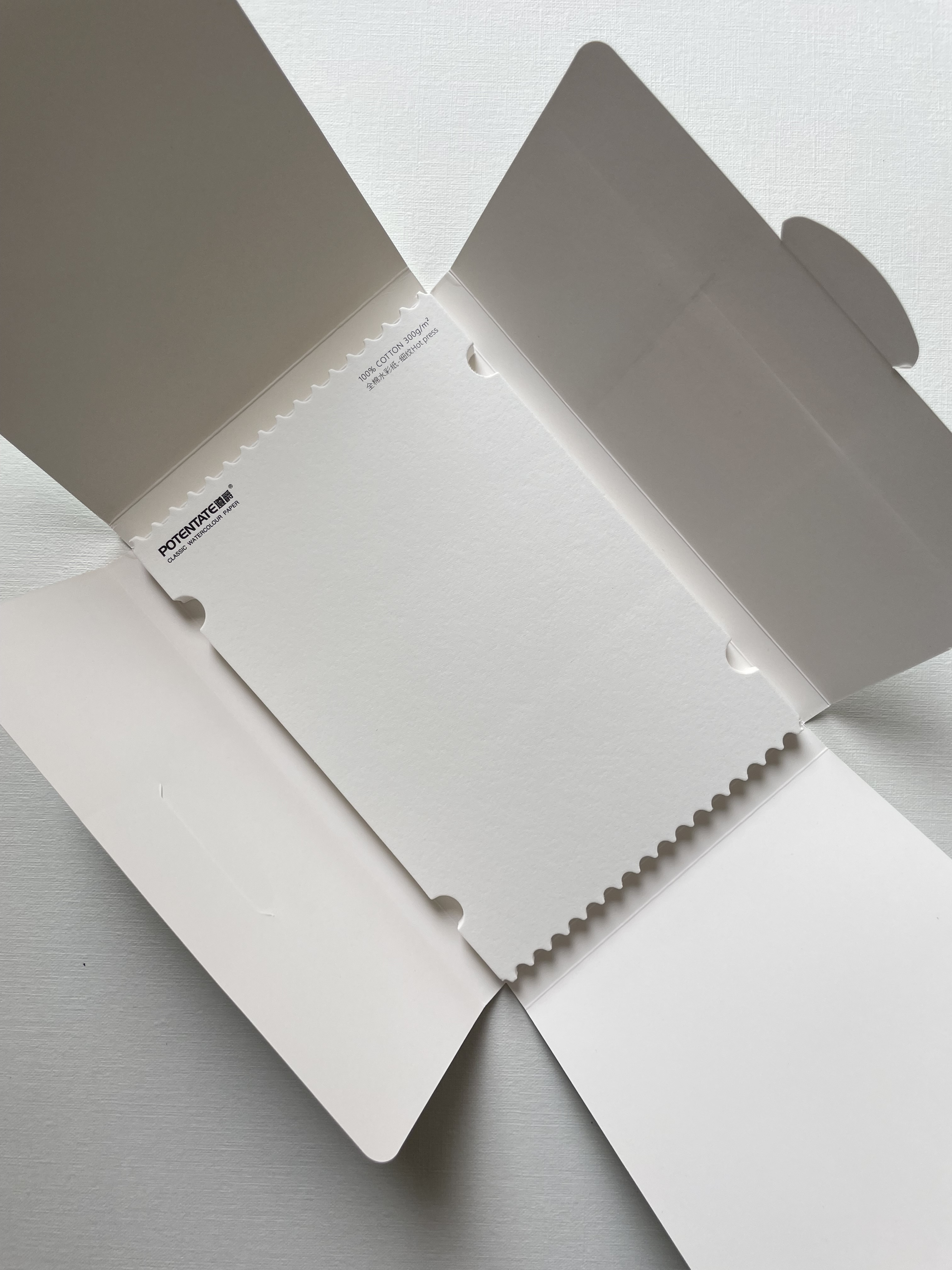 Наборы акварельных открыток от Potentate содержат по 20 листов бумаги выполненной из 100% хлопка без кислот отбеливателей. Плотность бумаги 300 гр/м2 и практически гладкая фактура позволяют создавать акварельные миниатюры с использованием большого количества воды. Серия представлена открытками разных форматов с волнистым или ровным краем.