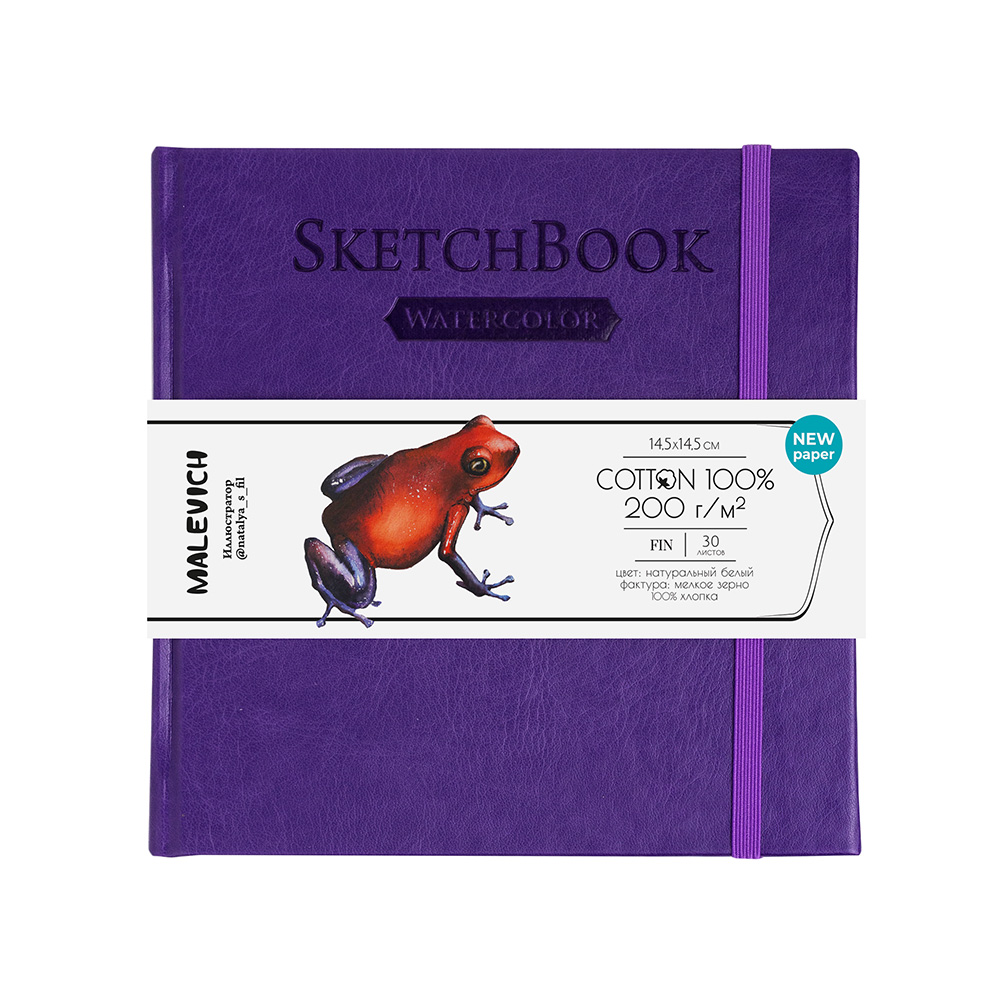 Компактные скетчбуки для акварели в книжном переплёте формата 14,5х14,5 см. Внутри скетчбука блок из 30 листов мелкозернистой бумаги выполненной из 100% хлопка без применения кислот и отбеливателей. Плотность бумаги 200 гр/м2 позволяет писать акварелью и другими красками на водной основе с использованием достаточно большого количества воды. Серия представлена скетчбуками в обложках разного цвета.