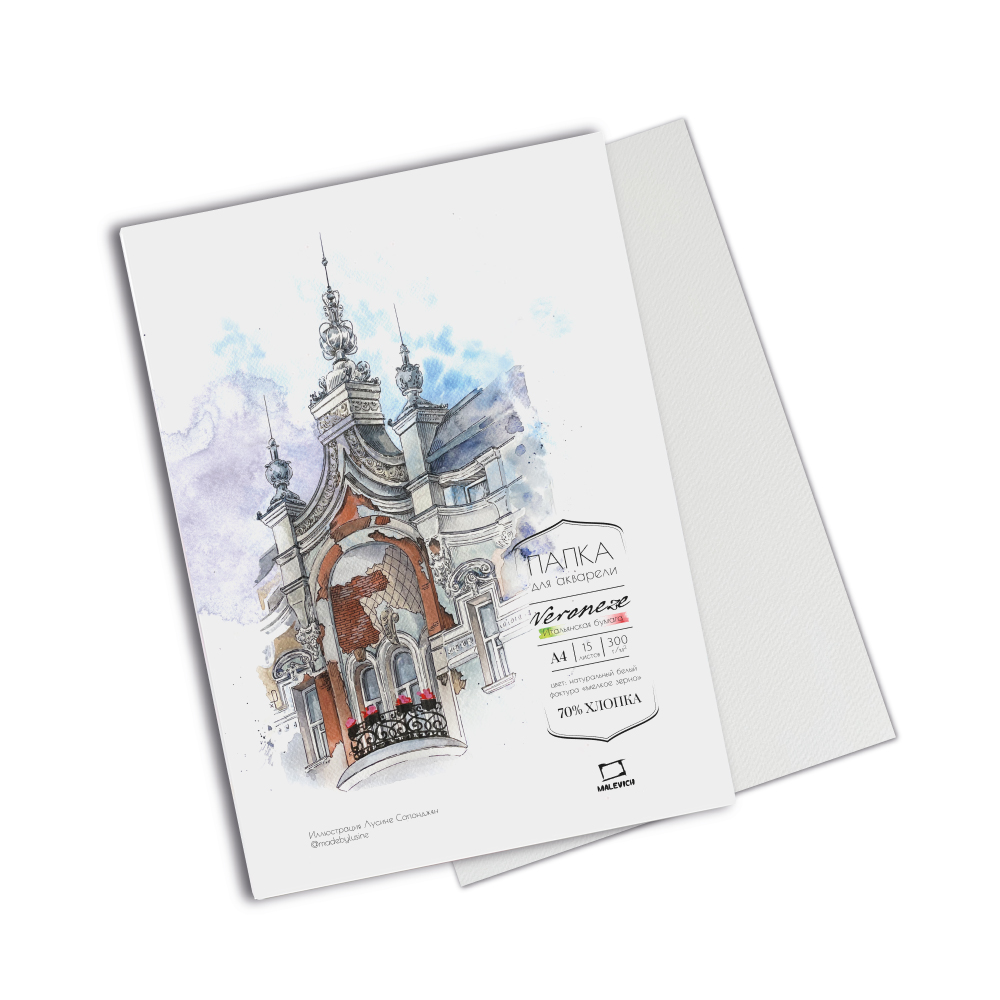 Профессиональная бумага для акварели сделана из высококачественной смеси волокон, в состав которой входит 70% хлопка. Бумага Veroneze двусторонняя, не содержит кислот и рН-нейтральна, что гарантирует сохранность цвета бумаги и яркости работы на долгие годы. Благодаря пропитке внутри, обеспечивается необходимая степень поглощения пигментов, оставляя звонкость краски. Плотность бумаги 300 гр/м2 холодного прессования с фактурой среднего зерна (Fin) отлично смачивается и держит воду, не деформируясь, позволяя работать в сухой и сырой технике, а также без вреда вносить изменения. За счёт фактуры зерна среднего размера бумага наиболее ярко показывает имеющуюся грануляцию акварельных красок. Износостойка к ластику и маскировочной жидкости. Цвет бумаги — натурально белый.