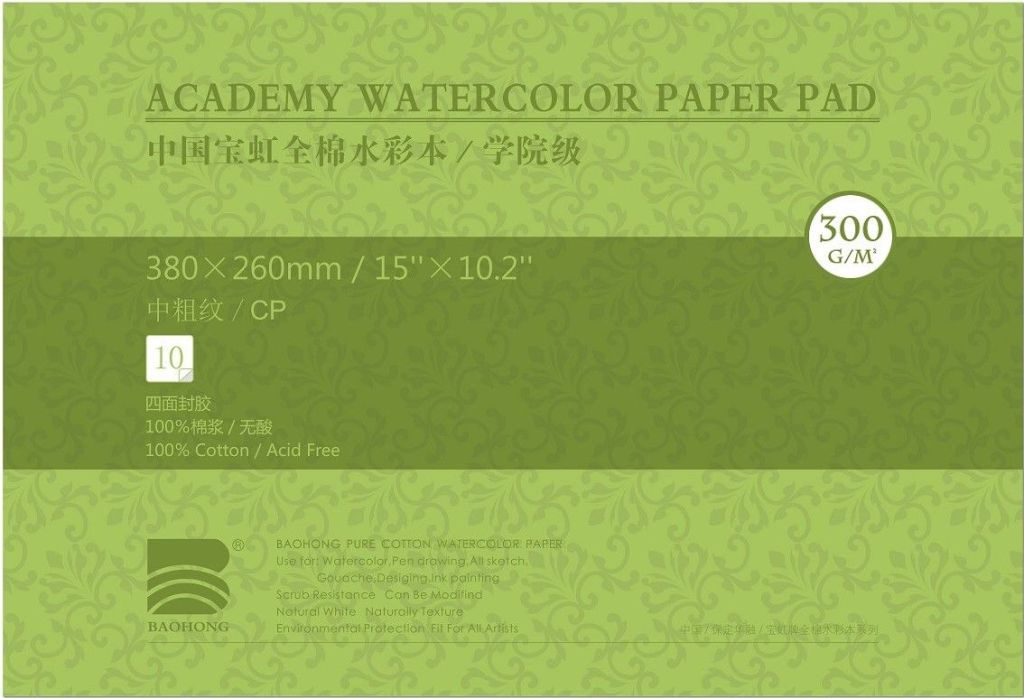 О серии: альбом склейка по 4-м сторонам. Внутри альбома блок из 10 листов среднезернистой бумаги, выполненной из 100% хлопка. Бумага произведена без кислот и отбеливателей, обладает естественным белым цветом и высокой плотностью 300 гр/м, что позволяет работать акварелью с использованием большого количества воды. Альбомы представлены в 6 различных форматах. Применение: для художественных работ акварелью и другими красками на водной основе. О бренде: изготавливается под брендом Baohong на фабрике по производству специализированной и художественной бумаги в Китае. Фабрика была основана в 1992 году и в настоящее время имеет множество запатентованных разработок бумаги различного типа — от эскизной до цифровой художественной бумаги для печати. Профессиональное качество, строгие технологии и широкая адаптивность обеспечивают высокие стандарты специализированной бумаги бренда Baohong для самых различных работ.