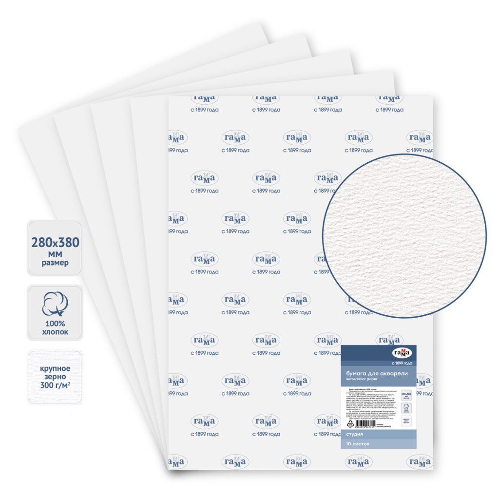 Бумага для акварели «ГАММА» серии «Студия» выполнена из 100% хлопка без использования кислот и отбеливателей. Крупное зерно и плотность бумаги 300 г/м2 подходит для больших форматов, пейзажей, техник по-мокрому и создании красивых зернистых эффектов. Также подойдёт для техники по-мокрому, цвета будут стремительно перетекать, проникать в текстуру листа, благодаря чему можно создавать плавные переходы. Бумага хорошо держит форму и не деформируется при использовании большого количества воды. Цена указана за лист бумаги.