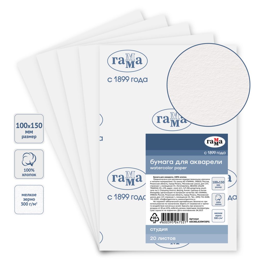 Бумага для акварели «ГАММА» серии «Студия» выполнена из 100% хлопка без использования кислот и отбеливателей. Мелкое зерно и плотность бумаги 300 г/м2 подходит для кропотливой детализированной живописи, ботанической иллюстрации и лессировок. Также подойдёт для техники по-мокрому, цвета будут стремительно перетекать, проникать в текстуру листа, благодаря чему можно создавать различные эффекты и плавные переходы. Бумага хорошо держит форму и не деформируется при использовании большого количества воды. Цена указана за лист бумаги.