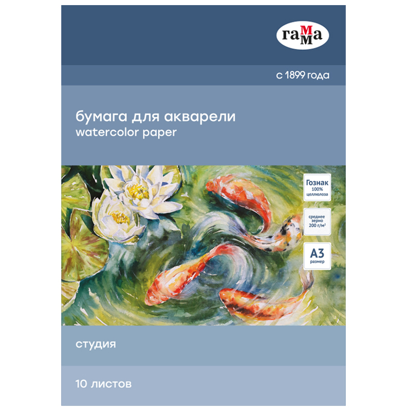 В папках «Гамма Студия» используется рисовальная бумага марки А «Гознак» (Спб). Бумага отлично подходит для акварели, гуаши, работы в смешанных техниках, многослойных работ карандашами. Выполнена из 100% целлюлозы, плотностью 200г/м2. Естественная белизна. Бумага хорошо впитывает влагу, не коробится от воздействия воды.