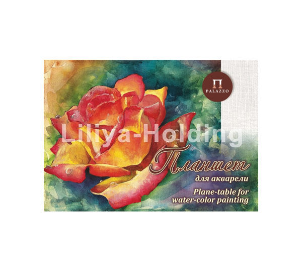 О серии: планшеты для акварели «Чайная роза» - это альбом с жёсткой плотной картонной подложкой. Благодаря такой подложке отпадает потребность закреплять бумагу (альбом) на деревянном планшете, за счёт этого таким альбомом удобно пользоваться не только в студии, но и на природе. Планшеты для акварели «Чайная роза» выпускаются в форматах А2, А3, А4 и А5. На каждом планшете по 20 листов, которые склеены по одной из сторон. Характеристика: в планшете использована карточная тиснёная бумага белого цвета. Тиснение бумаги напоминает холст. Плотность 200 г/кв.м. Бумага эффективно впитывает воду и сохраняет яркость красок после высыхания. Применение: для выполнения работ в различных техниках акварельной живописи. Производство: производится российской компанией «Лилия Холдинг», основанной в 2000 году. Компания является официальным партнером Санкт-Петербургской бумажной фабрики – филиала государственного унитарного предприятия «Гознак». При производстве бумаги специалисты компании используют современные технологии, что позволяет изготавливать бумагу высшего сорта. За время существования компания стала одним из крупнейших производителей бумаги в России.