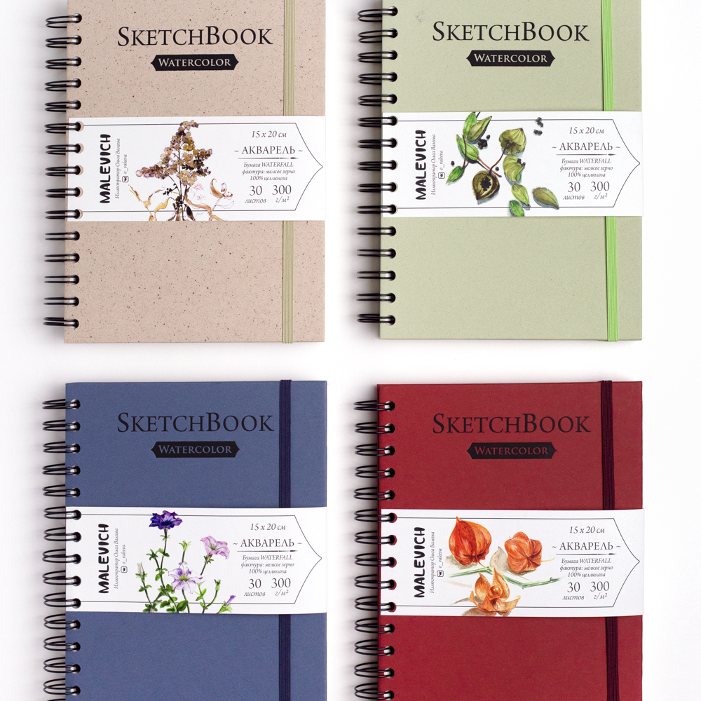 Внутри скетчбуков серии Nature профессиональная бумага для акварели плотностью 300 гр/м2 с мелкозернистой фактурой. Изготовлена из 100% альфа-целлюлозы. Из бумаги удален лигнин (woodpulp paper), за счет чего бумага не стареет, не желтеет и сохраняет рисунок на долгие годы. Обеспечивает равномерную акварельную заливку, впитывает воду, но при этом слабо деформируется, стойка к вымыванию. Не съедает цвет, оставляя яркие цвета неизменными. Без кислот. Серия представлена скетчбуками на спирали в твердой обложке разных цветов.