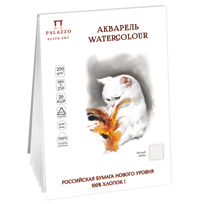 Особая композиция хлопковых волокон придает ценные характеристики бумаге: долговечность, закрепление и хорошее впитывание краски. Естественная фактура зерна получается путем прессования бумаги между шерстяными поверхностями, этот процесс позволяет добиться изящной и изысканной поверхности бумаги, которая отвечает самым высоким требованиям мастеров. Планшет состоит из 20 листов акварельной бумаги, плотностью 250г, 100% хлопка и имеет зернистую поверхность. Внутренний блок проклеен с четырех сторон по корешку и имеет основание из жесткого картона для удобства рисования.
