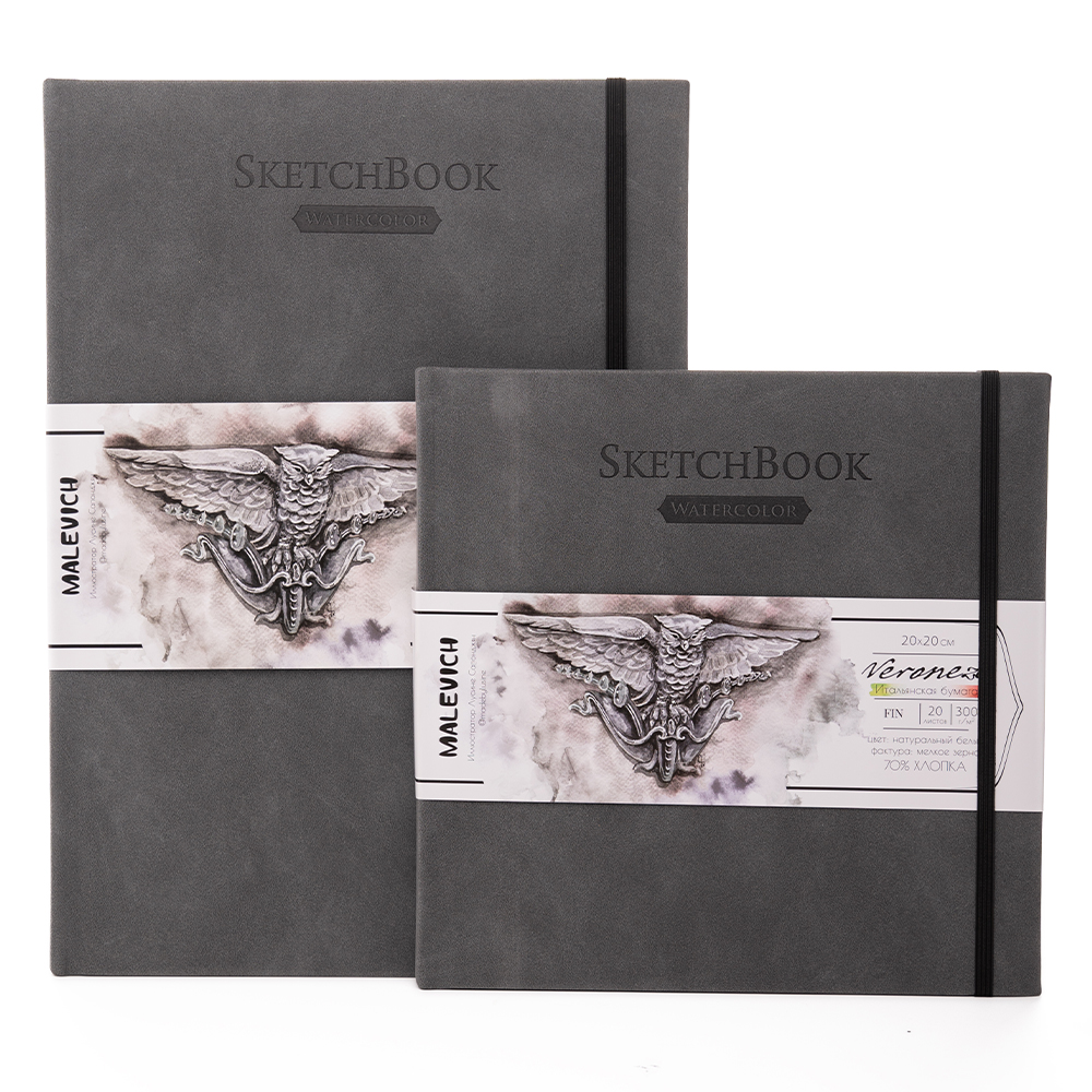 Скетчбуки с профессиональной акварельной бумагой итальянского производства с содержанием хлопка до 70%. В отличии от 100% хлопка эта бумага меньше «съедает» цвет и оставляет рисунок ярким, но при этом позволяет работать многослойно. Это по-настоящему идеальное сочетание хлопка и целлюлозы, которое наиболее универсально в применении. Плотность 300 гр/м2 позволяет использовать много воды, а книжный переплёт удобен для рисования на всем развороте, бумага имеет одинаковую фактуру с двух сторон.
