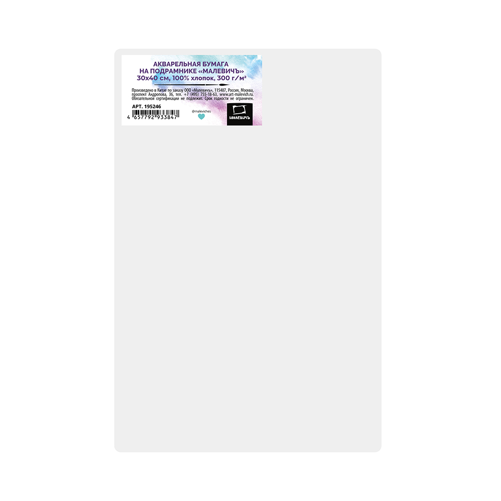 Хлопковая бумага на подрамнике от бренда «Малевичъ» — это идеальная основа для ваших акварельных работ. Бумага из качественного стопроцентного хлопка обладает высокой плотностью 300 гр/м2, благодаря чему подходит для работы с большим количеством воды, не деформируется, выдерживает несколько слоёв краски и устойчива к смывкам и исправлениям без деформации и изгибов. Мелкозернистая фактура бумаги подойдёт как для детализированных работ, так и для абстракций. Бумага уже натянута на подрамник и готова к работе без необходимости использования планшета.