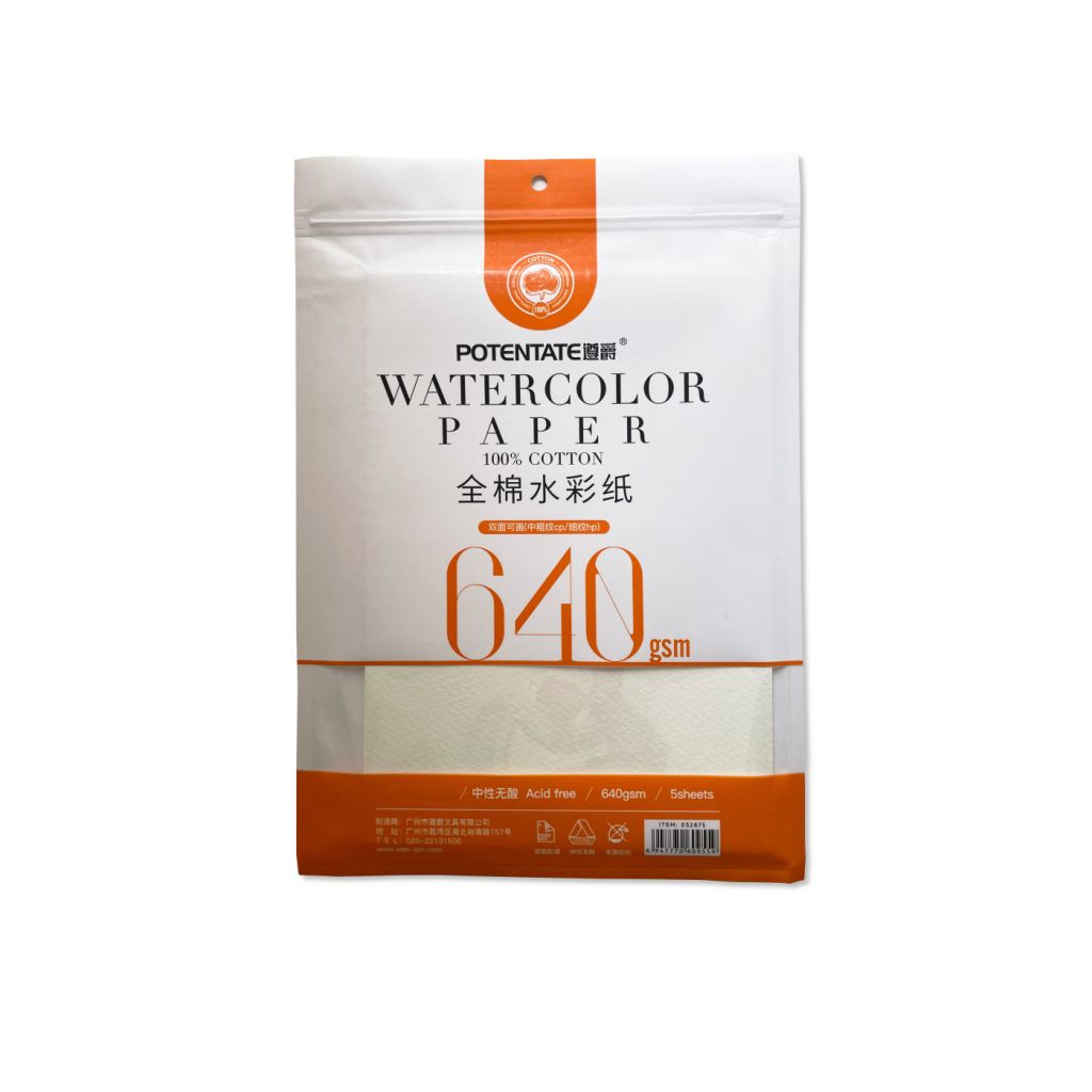 В наборе 5 листов бумаги с ярко выраженной фактурой, выполненной из 100% хлопка. Акварельная бумага плотностью 640 гр/м2 подойдет для работы с любыми водорастворимыми красками с использованием большого количества воды, устойчива к многочисленным смывкам и правкам Серия представлена бумагой в упаковке разного масштаба.