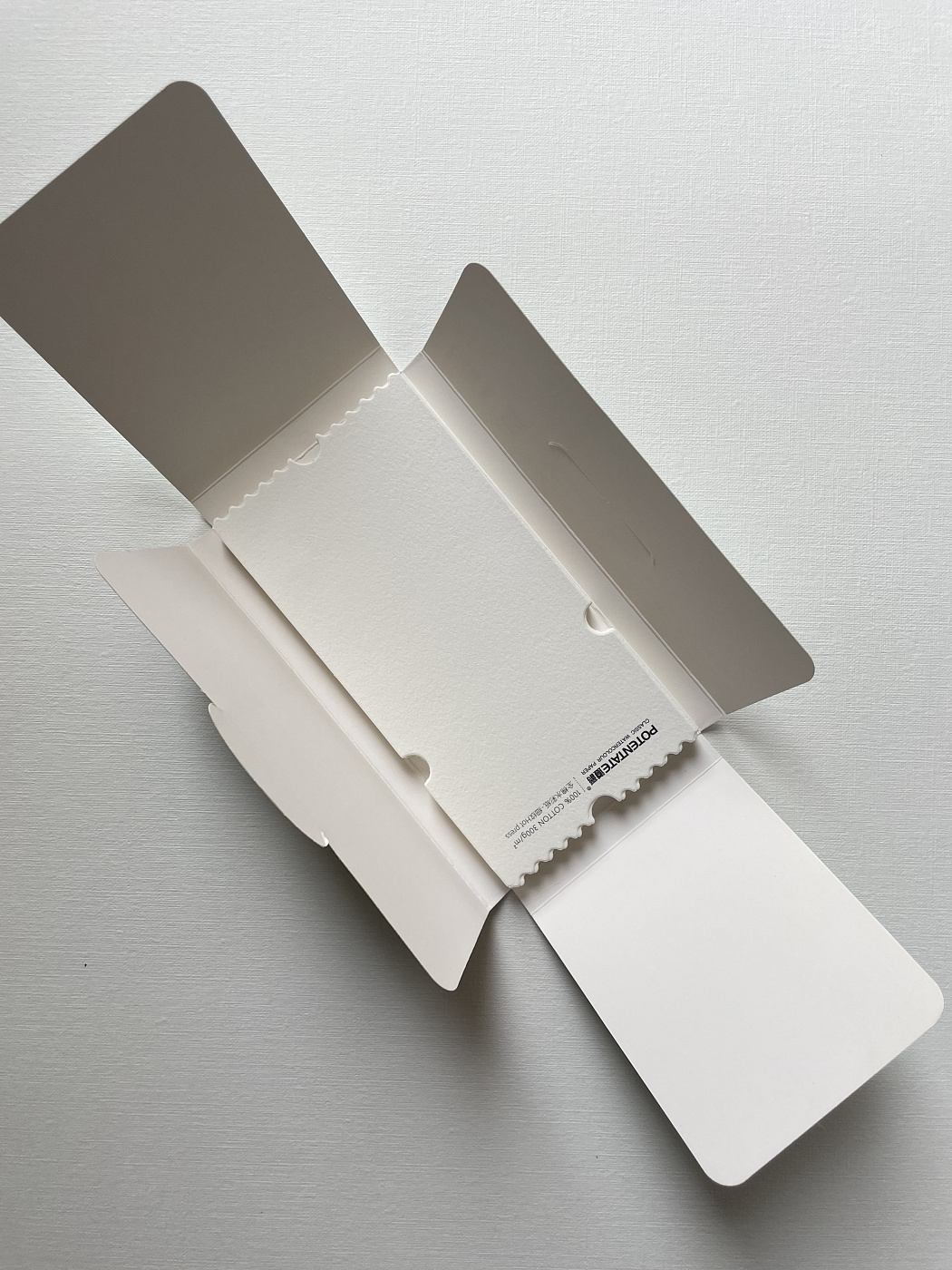 Наборы акварельных открыток от Potentate содержат по 20 листов бумаги выполненной из 100% хлопка без кислот отбеливателей. Плотность бумаги 300 гр/м2 и практически гладкая фактура позволяют создавать акварельные миниатюры с использованием большого количества воды. Серия представлена открытками разных форматов с волнистым или ровным краем.