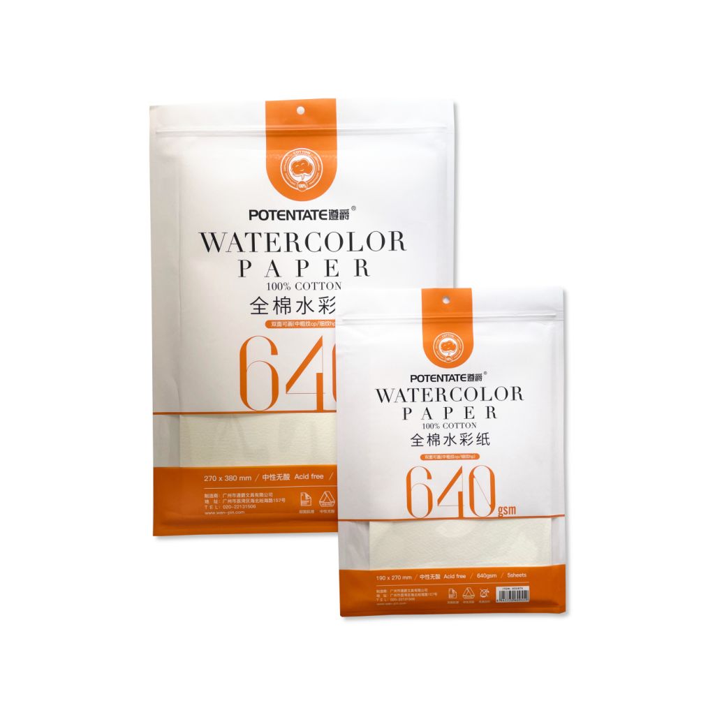В наборе 5 листов бумаги с ярко выраженной фактурой, выполненной из 100% хлопка. Акварельная бумага плотностью 640 гр/м2 подойдет для работы с любыми водорастворимыми красками с использованием большого количества воды, устойчива к многочисленным смывкам и правкам Серия представлена бумагой в упаковке разного масштаба.