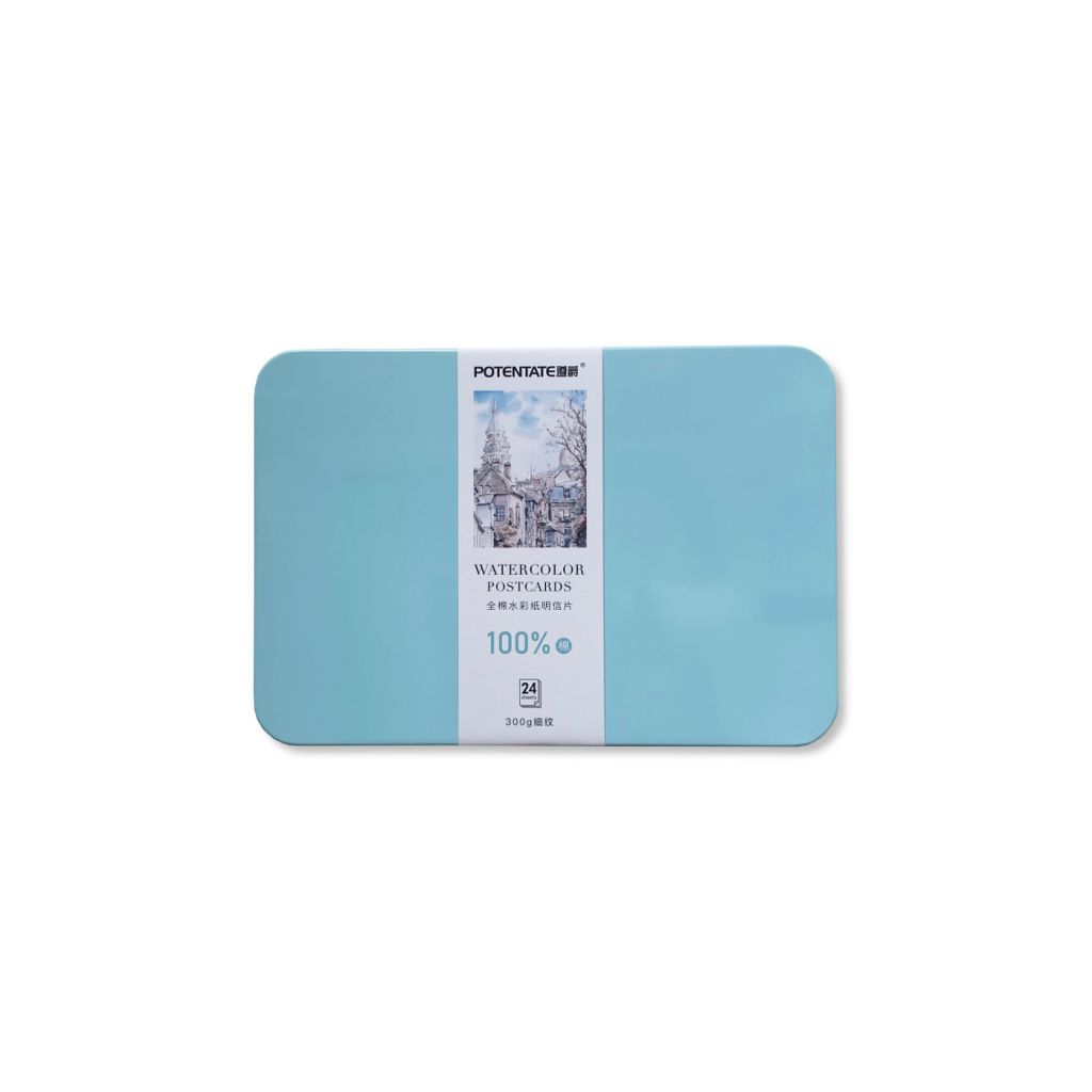 Наборы акварельных открыток от Potentate содержат по 24 листа бумаги выполненной из 100% хлопка без кислот отбеливателей. Плотность бумаги 300 гр/м2 позволяет создавать акварельные миниатюры с использованием большого количества воды. Фактура бумаги среднезернистая, на обратной стороне предусмотрена разметка для подписи. Размер открыток 10,5х15,5 см. Упакованы в металлические коробочки разных цветов.