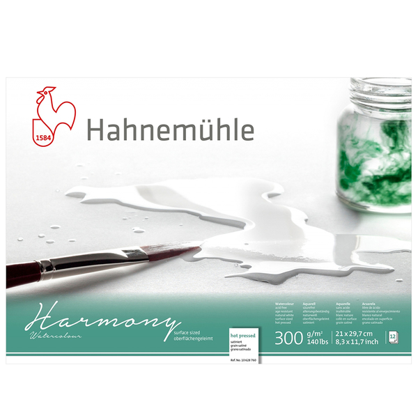 Бумага для акварели "Harmony" изготавливается из целлюлозы без добавления кислот. Бумага "Harmony" подойдёт для всех акварельных техник, в том числе для живописи «по мокрому». Цвета на бумаге выглядят естественно и ярко. Высокая плотность позволяет выдерживать большое количество воды и вносить правки до высыхания красок. При использовании маскировочных жидкостей и лент плёнка после высыхания удаляется без остатка и без повреждения бумаги. Возможно использование с гуашью, темперой и другими красками на водной основе. Бумага для акварели "Harmony" обладает естественным белым цветом и мелкозернистой фактурой. Её плотность 300 г/кв.м. Выпускается поштучно, в альбомах-склейках и в альбомах на спирали. Производится компанией «Hahnem?hle FineArt GmbH» («Ханемюле файнарт»). История предприятия берёт начало в 1584 году в Германии. Технологии, отработанные на протяжении веков, и постоянный контроль над качеством продукции, помогли предприятию занять ведущие позиции в арт-индустрии. Сегодня «Hahnem?hle FineArt GmbH» производит бумажную продукцию для широкого круга потребителей.