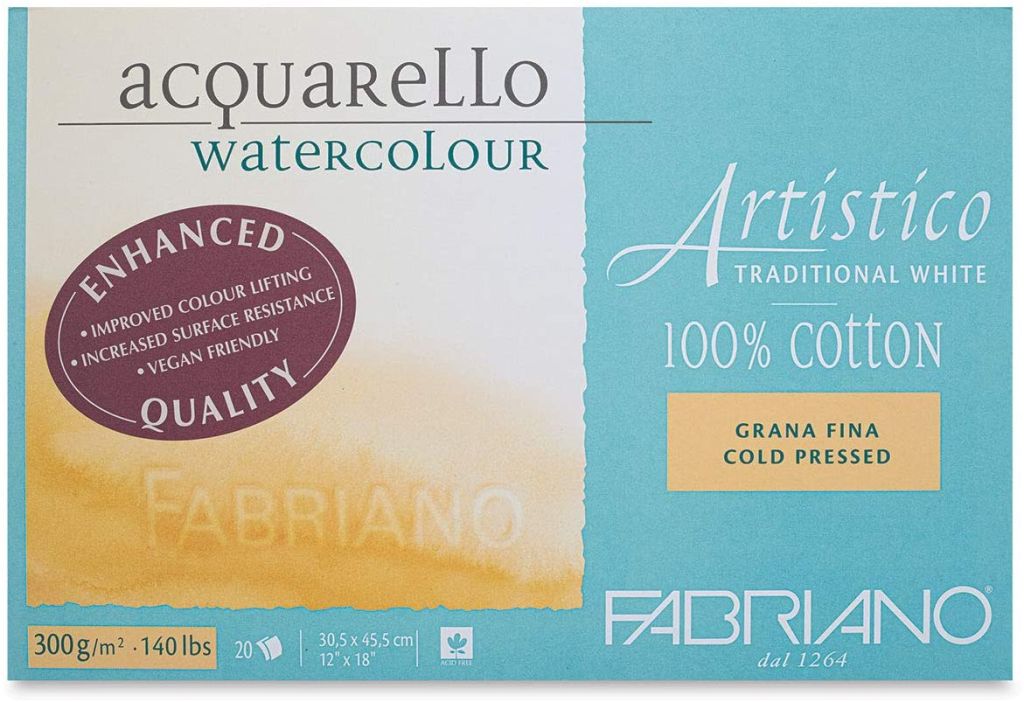 Обновленная профессиональная акварельная бумага Artistico White от Fabriano выполнена из 100% хлопка предназначена для работ акварелью. Новая формула пропитки бумаги обеспечивает идеальную цветопередачу, пигменты красок не проникают вглубь структуры листа. Пропитка произведена на основе растительного сырья (Vegan Friendly). Производится на мульдовых станках. Технология производства на мульдах придаёт ей уникальные характеристики, свойственные бумаге ручной работы. Fabriano Artistico подходит для любых графических материалов и «мокрых» техник — акварель, акрил, темпера, гуашь, Mix Media. Широко применяется для традиционных техник художественной печати. Альбомы серии представлены бумагой двух оттенков: Artistico Traditional White — белая бумага с теплым оттенком. Artistico Extra White — белая бумага с холодным оттенком. Бумага произведена из длинных, эластичных и прочных волокон хлопка, придающих бумаге мягкую текстуру. Поверхность устойчива к многократной размывке, растушевке и стиранию. Бумага не содержит кислот, лигнина и соответствует стандарту ISO 9706 (Long Life), что обеспечивает долговечность и устойчивость к пожелтению. Линейка представлена продукцией различных форматов: Блок-склейка по 4 сторонам — идеальный формат для рисования в путешествиях или на пленэре. Склейка выполняет роль планшета, листы не деформируются даже при использовании большого количества воды, нет необходимости фиксировать лист на рабочей поверхности. Верхний правый угол склейки не проклеивается для удобства отделения первого листа шпателем или канцелярским ножом. Листовая бумага — для больших и нестандартных форматов. Листы Artstico «имперского» размера (56*76 см) — отличается неровными краями по всем 4 сторонам листа. В правом нижнем углу листа расположен водяной знак Fabriano в виде геральдического креста «Cross Pommy». Бумага в рулоне — для работ очень больших форматов, самостоятельной нарезки, для обучения живописи в группах, для изготовления скетчбуков. Ширина - 1,4 метра, длина - 10 метров.