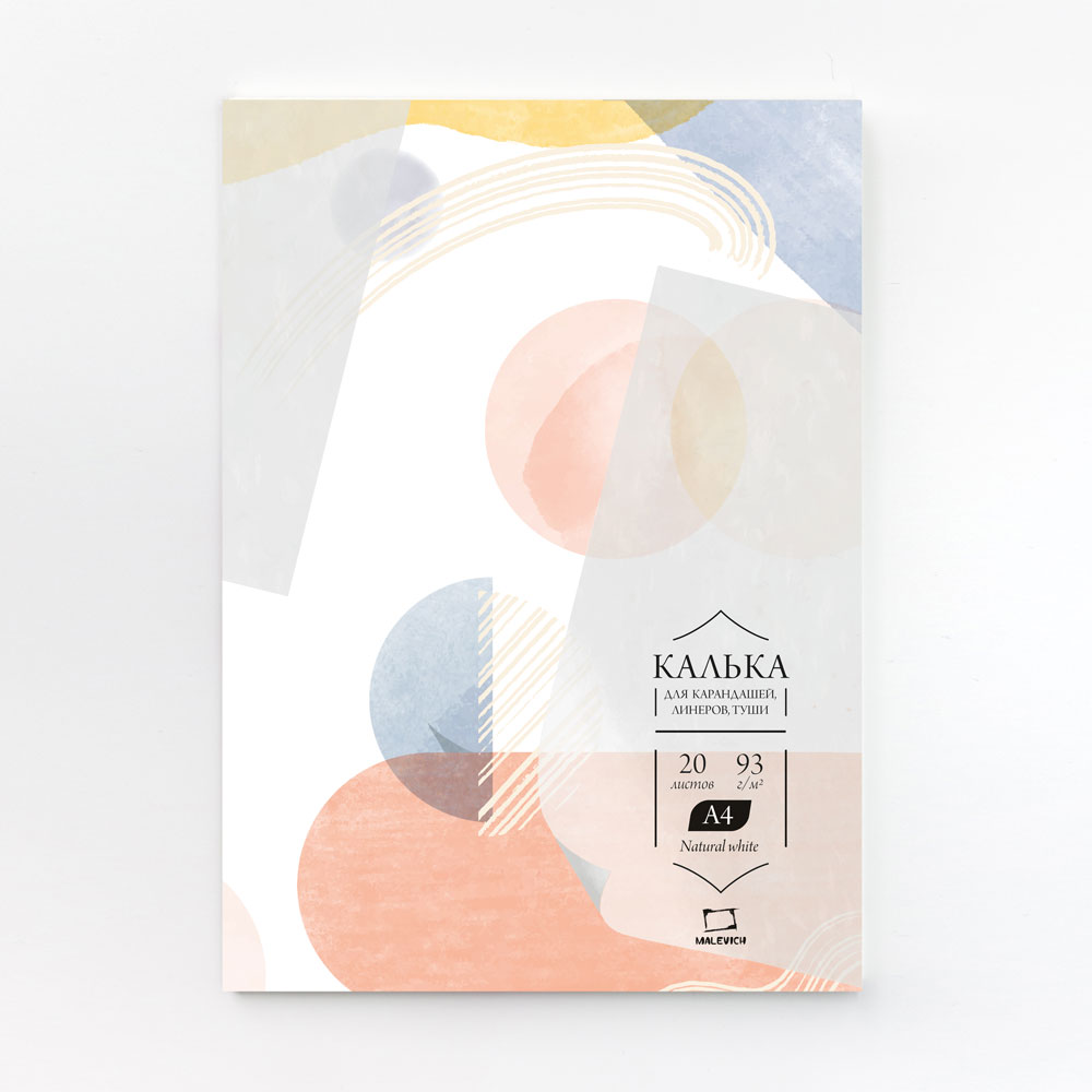 Калька «Малевичъ» прозрачная матовая может использоваться как бумага для прокладки работ, выполненных различными графическими материалами, пастелью или красками. Калька имеет матовую поверхность и может быть использована не только для прокладки работ, но также и для рисования. На нее отлично ложатся уголь, простые чернографитные и цветные карандаши, чернила, капиллярные и гелевые ручки, линеры. Плотность 93 г/м и двухсторонность бумаги удобна для переноса эскиза с черновика на чистовик, что очень востребовано у художников, использующих хлопковую бумагу, которая не терпит ластика. Благодаря такому способу переноса чистовик будет идеальным, без лишних повреждений бумаги. При производстве кальки Малевич не используются кислоты – это обеспечивает сохранность работ. Плотная структура отлично подходит для использование кальки в фотоальбомах и скрапбукинге, гербариях, выкройках и так далее. Калька «Малевичъ» представлена папках А3 и А4 по 20 листов.