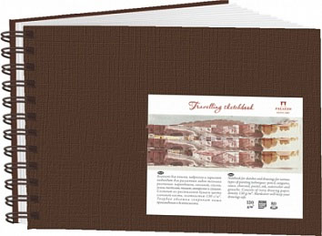О серии: блокноты «Travelling sketchbook» изготавливаются с твёрдой обложкой, тиснение на которой имитирует поверхность холста. В серии представлены блокноты разных форматов с обложками различных цветов. Характеристика: в блокноте использована универсальная рисовальная бумага цвета слоновой кости, плотность которой 130 г/кв.м. Данные блокноты брошюрованы спиралью. Применение: блокнот подходит для различных техник рисования. На рисовальную бумагу хорошо лягут не только сухие графические материалы, но и тушь, акварель, гуашь. Производство: производится российской компанией «Лилия Холдинг», основанной в 2000 году. Компания является официальным партнером Санкт-Петербургской бумажной фабрики – филиала государственного унитарного предприятия «Гознак». При производстве бумаги специалисты компании используют современные технологии, что позволяет изготавливать бумагу высшего сорта. За время существования компания стала одним из крупнейших производителей бумаги в России.