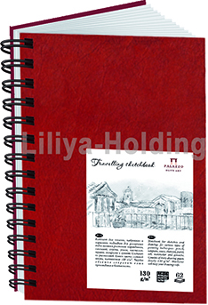 О серии: блокноты «Travelling sketchbook» изготавливаются с твёрдой обложкой, тиснение на которой имитирует поверхность холста. В серии представлены блокноты разных форматов с обложками различных цветов. Характеристика: в блокноте использована универсальная рисовальная бумага цвета слоновой кости, плотность которой 130 г/кв.м. Данные блокноты брошюрованы спиралью. Применение: блокнот подходит для различных техник рисования. На рисовальную бумагу хорошо лягут не только сухие графические материалы, но и тушь, акварель, гуашь. Производство: производится российской компанией «Лилия Холдинг», основанной в 2000 году. Компания является официальным партнером Санкт-Петербургской бумажной фабрики – филиала государственного унитарного предприятия «Гознак». При производстве бумаги специалисты компании используют современные технологии, что позволяет изготавливать бумагу высшего сорта. За время существования компания стала одним из крупнейших производителей бумаги в России.
