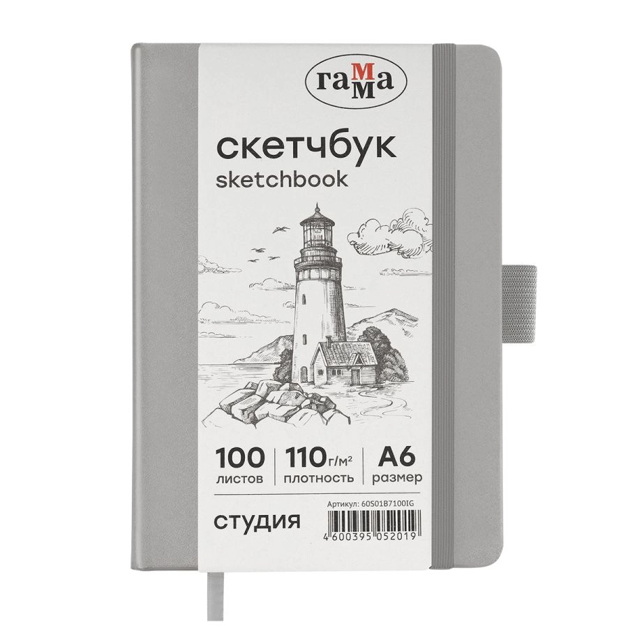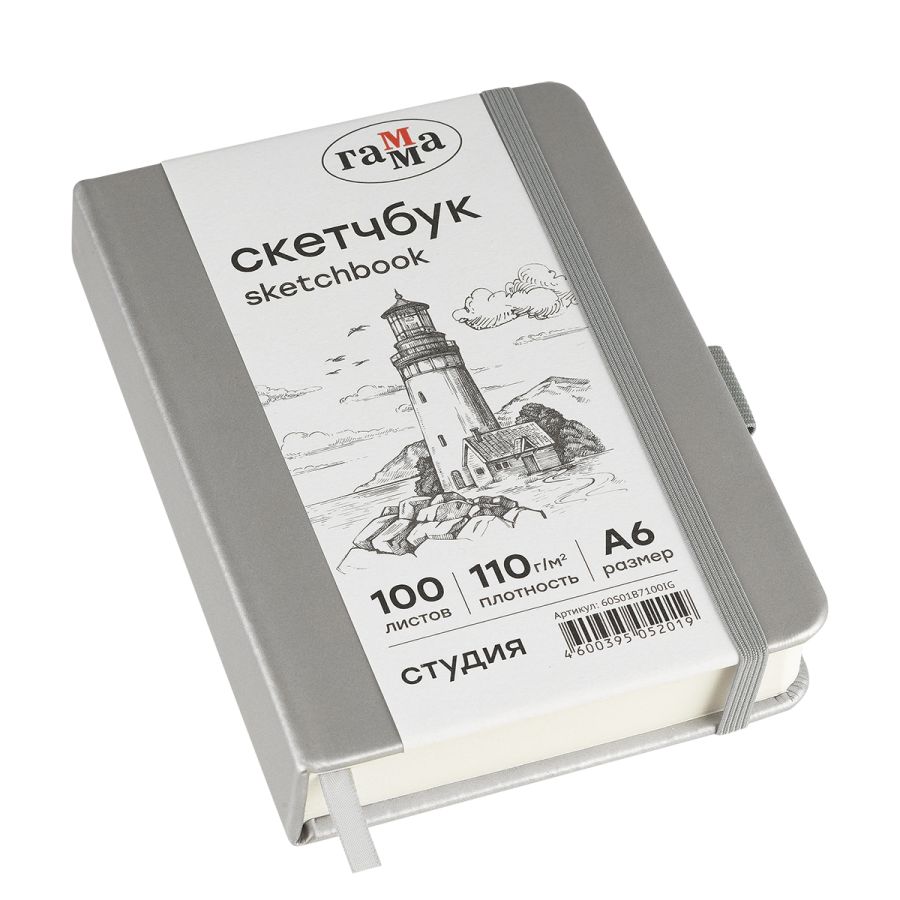 Скетчбук «ГАММА» формата A6 идеален для эскизов, набросков, скетчинга, записей. Подойдёт как для художников, дизайнеров, так и для студентов, школьников. Внутренний блок состоит из 100 листов высококачественной бумаги цвета слоновой кости плотностью 110 г/м2. Походит для рисования разными материалами: карандашами, линерами, пастелью, графитом, ручками и другими. Тип скрепления – сшивка. Лаконичный, компактный размер и жёсткая обложка с эффектом soft-touch обеспечивает удобство зарисовок на прогулке или в путешествии. Цвет обложки – серебро. Закладка-ляссе помогает быстро открыть скетчбук на нужной странице, а эластичная резинка предотвращает листы от замятия и случайного открытия. Скетчбук удобно брать в путешествие, на прогулку или пленэр.