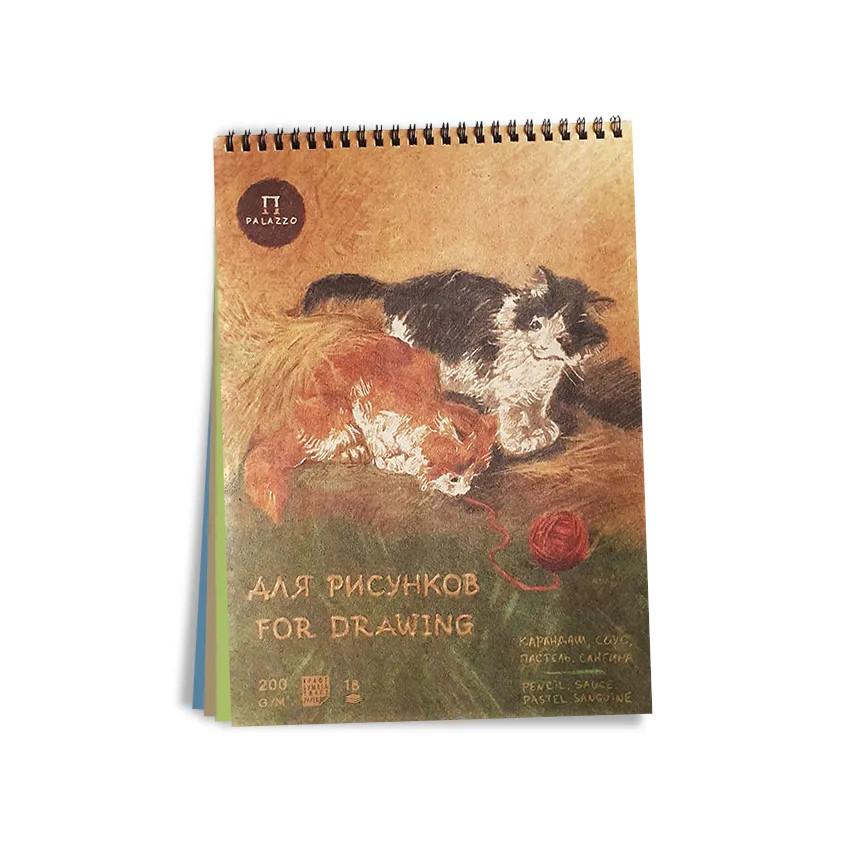 Альбом для эскизов и рисунков на пружине с перфорацией состоит из крафт-бумаги повышенной плотности 200г/м2, 3х цветов (зеленый, коричневый, синий), имеет основание из жесткого картона для удобства рисования. Подходит для рисунка карандашом, углем, пастелью, сангиной, соусом, гелевыми ручками контрастных цветов.