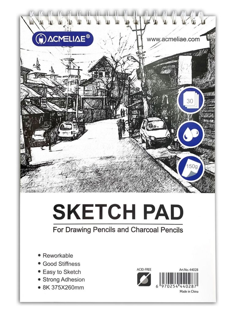 Скетчбук для рисования, эскизов и графики с жесткой обложкой на кольцах предназначен для цветных, чернографитных и угольных карандашей и других графических и художественных материалов. Бескислотная бумага (acid-free paper) с нейтральным pH, не содержит лигнина и минералов серы. Не желтеет со временем и гарантирует долгосрочное хранение выполненных на ней рисунков. Обладает высокой степенью адгезии, обеспечивая хорошее сцепление художественного материала с бумагой. Внутренний блок — плотная бумага белого цвета 150г. Текстура бумаги среднезернистая. Подходит для многоразового использования, после стирания рисунок можно нанести повторно. Красивый альбом для творчества имеет твёрдую обложку-планшет из плотного картона — удобно, если вы рисуете на весу или выходите на пленэр. Альбом для художеств подойдет для любителей, школьников, студентов, начинающих художников, профессионалов, для художественных школ и студий, во время путешествий.